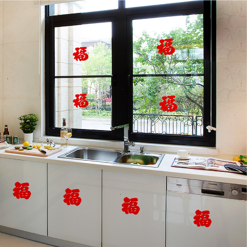 Small Fu character sticker housewarming new home decoration decoration supplies Fu zi door sticker window sticker Fu word sticker moved into the house window flower