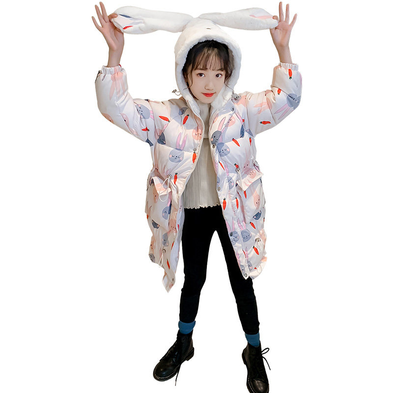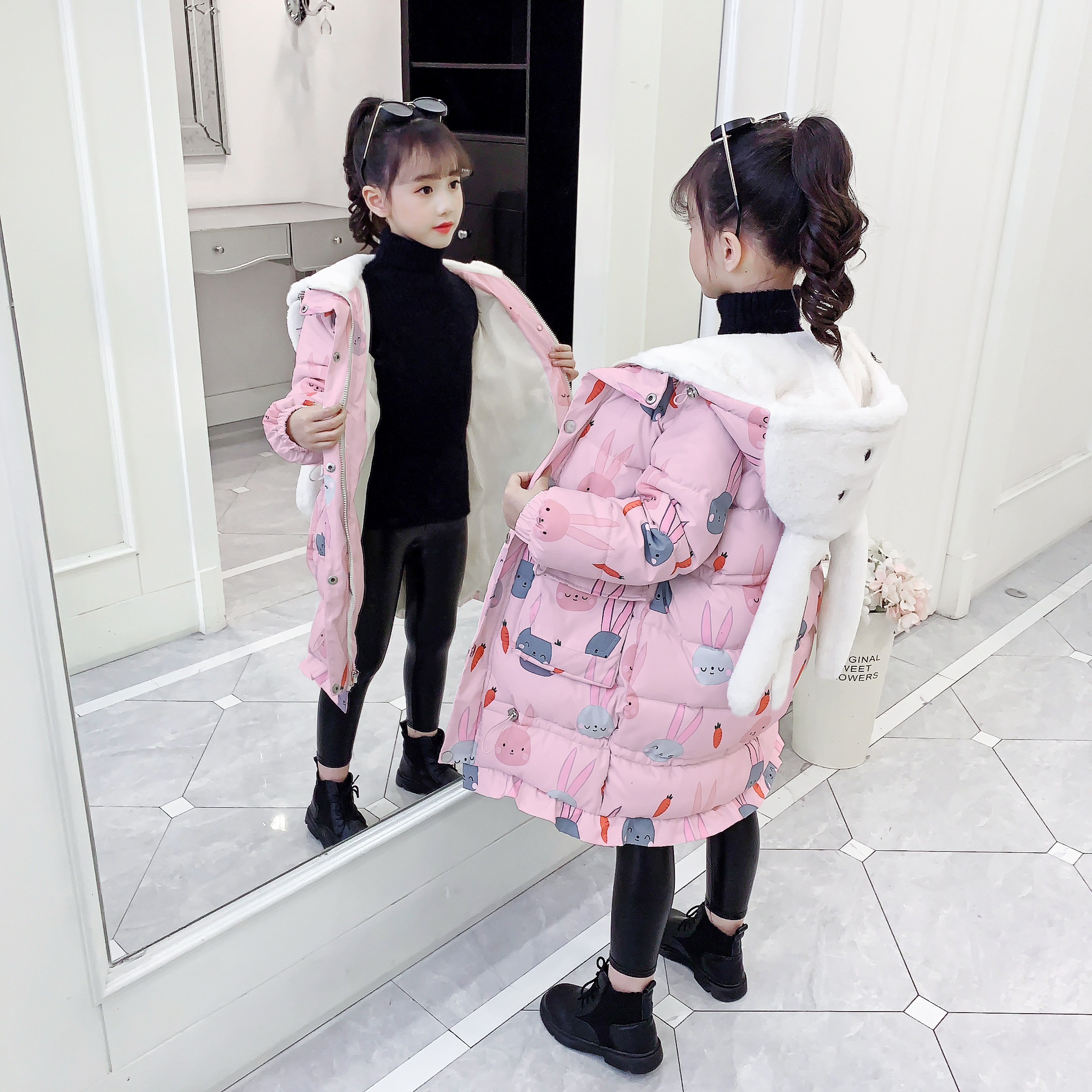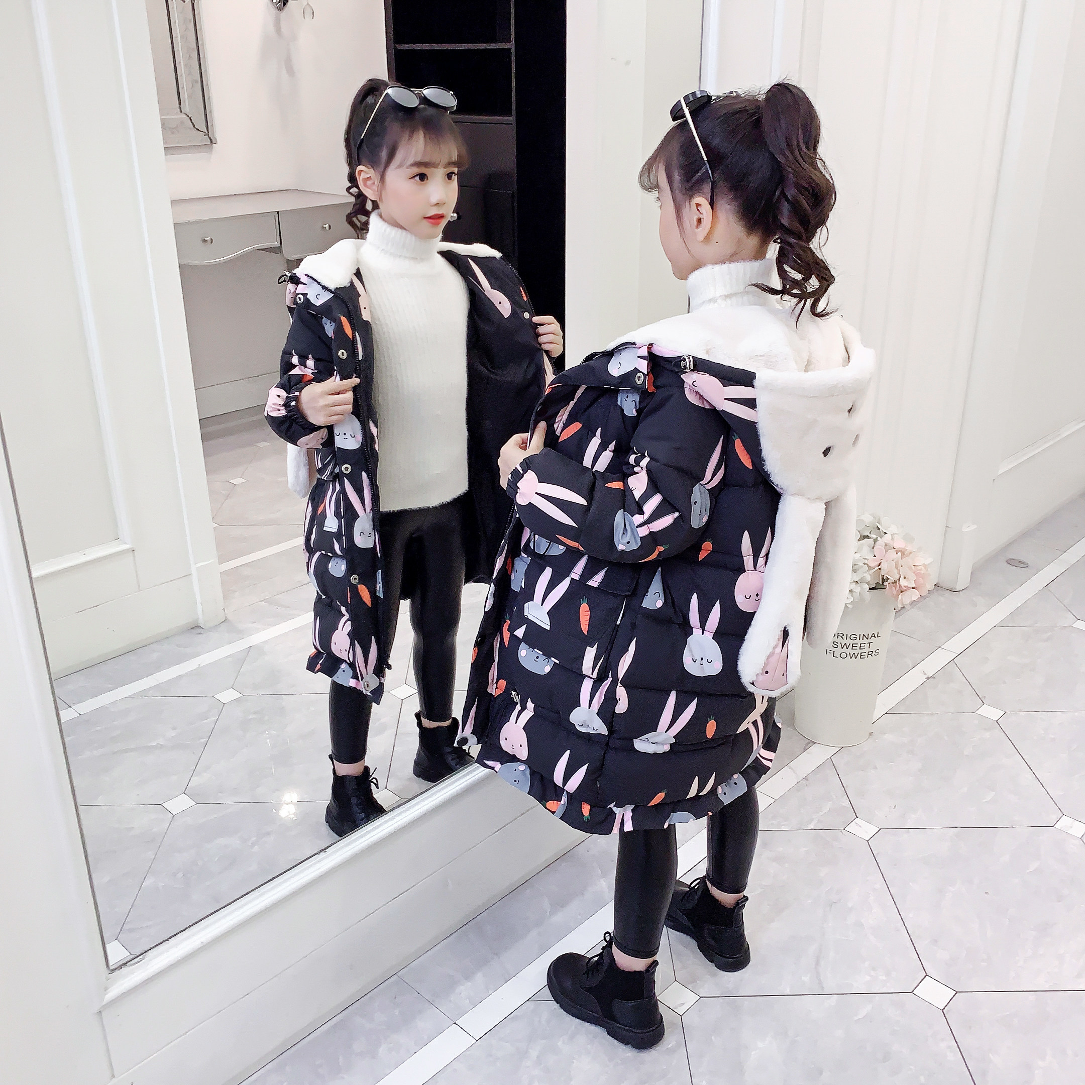 White batch rabbit long cotton coat black batch rabbit long cotton coat