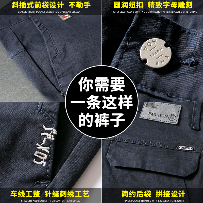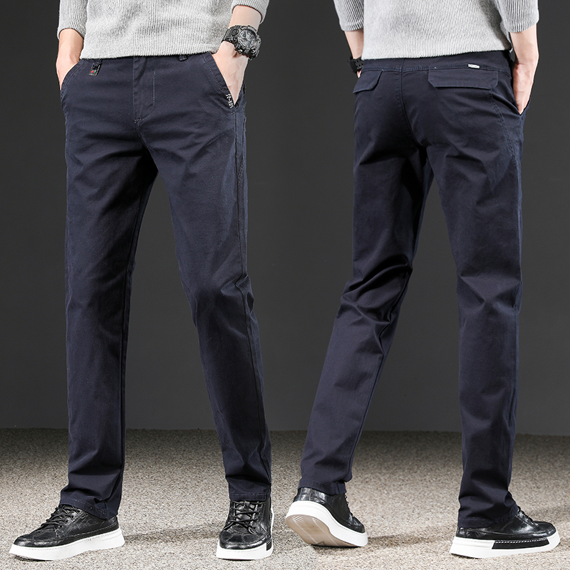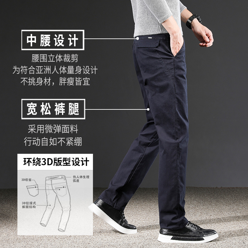 Summer thin high-end pure cotton casual pants men's straight loose middle-aged business sports men's high-end elastic pants