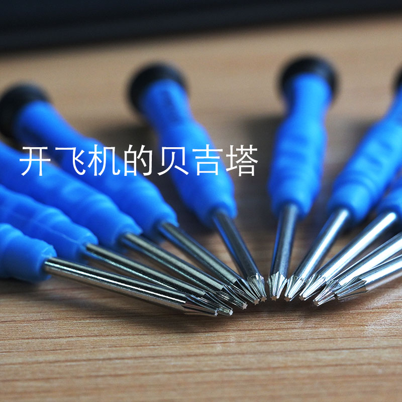 Sky blue plastic T5 screwdriver, 1 aluminum alloy five-in-one screwdriver, 7-piece set for dismantling and cleaning