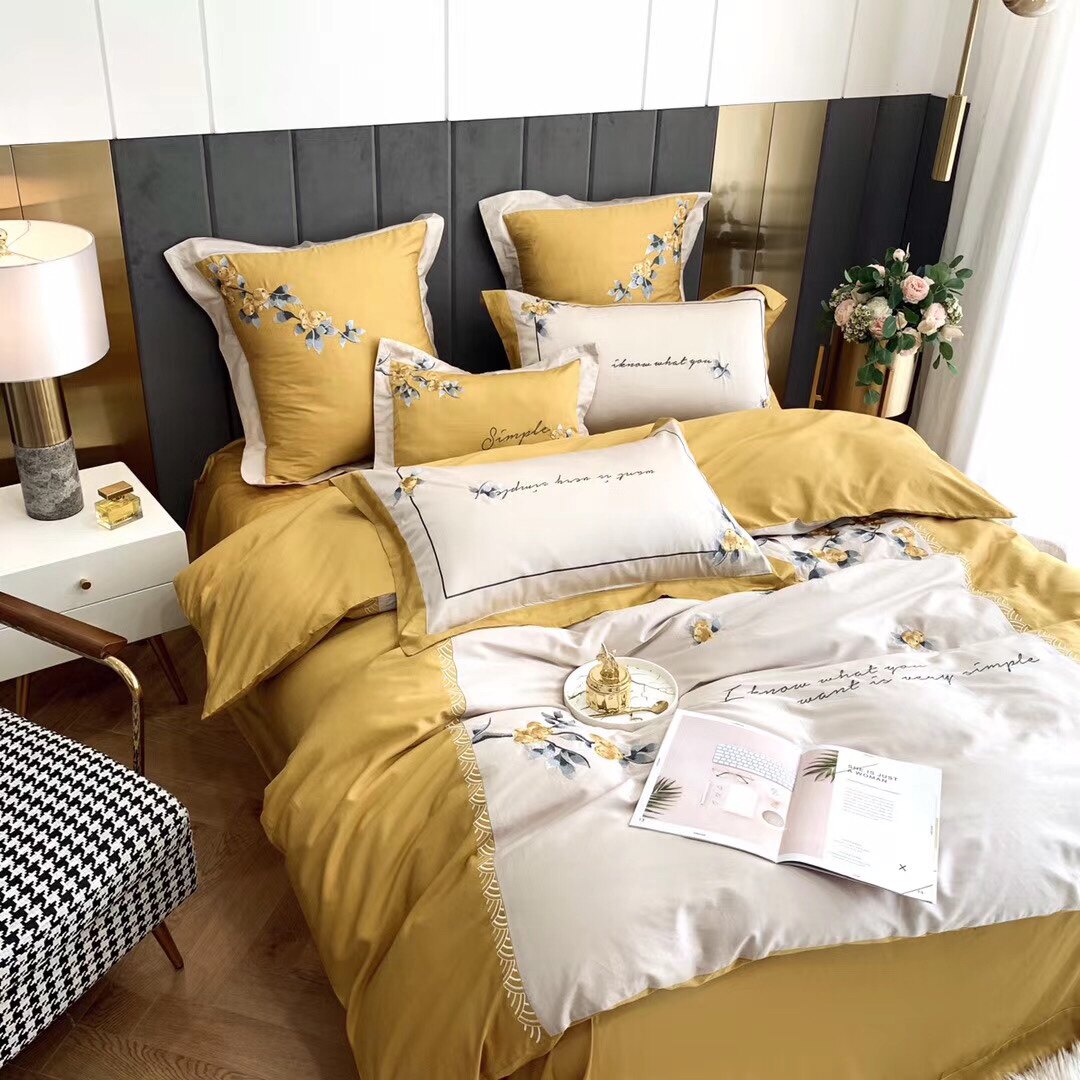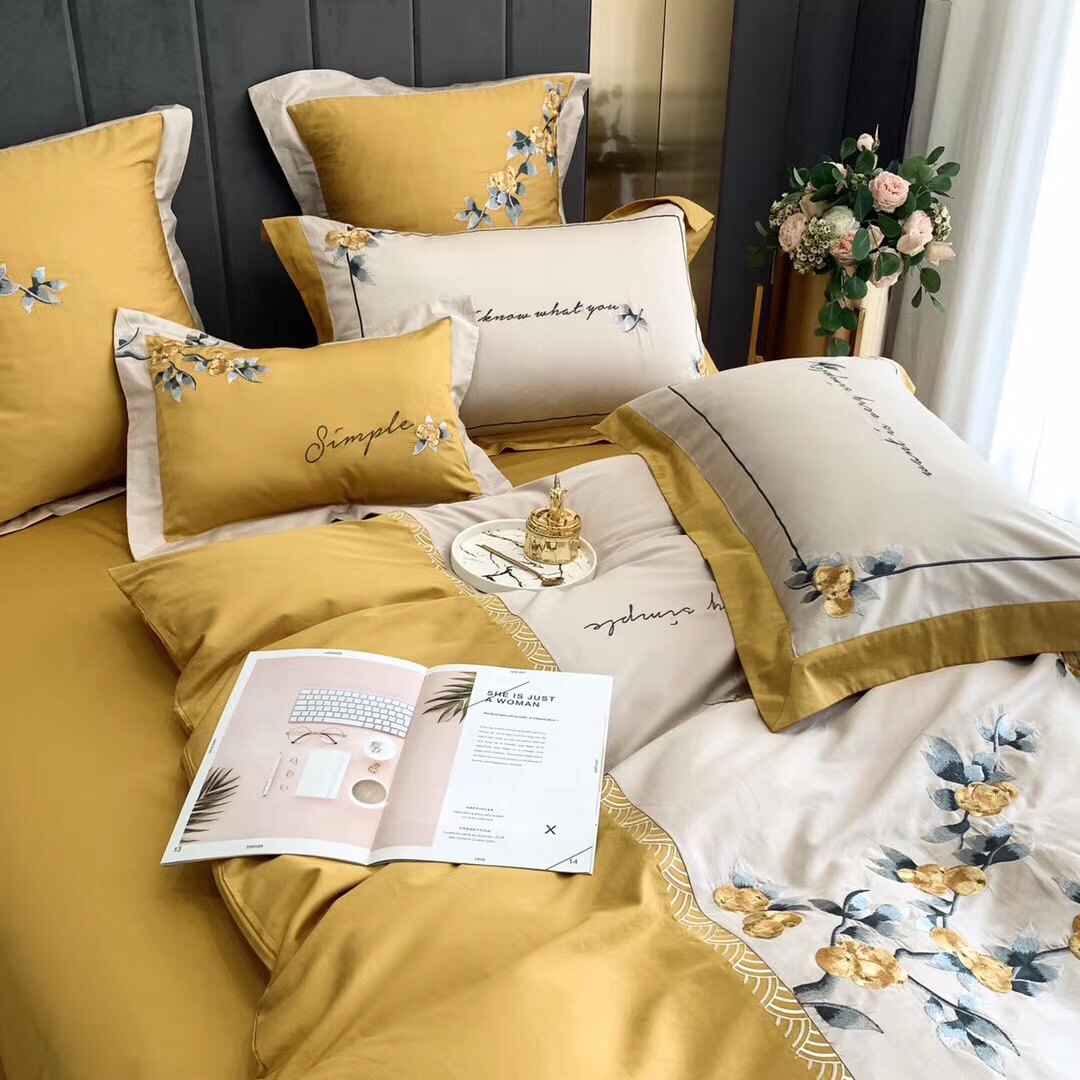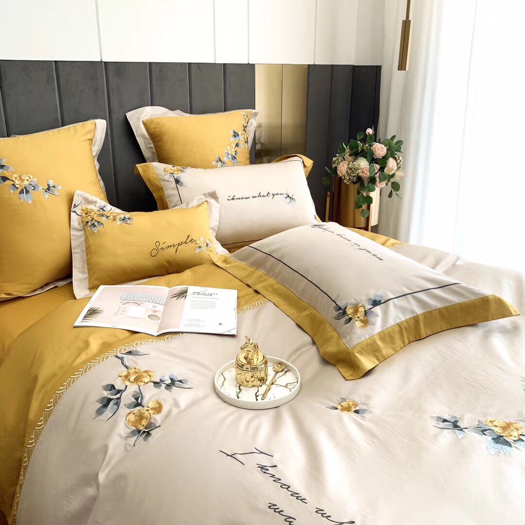 High end 60 long suede cotton embroidery Four pieces of high density full cotton minimalist New Chinese style bed Upper Supplies kit
