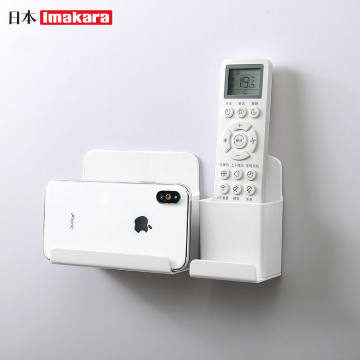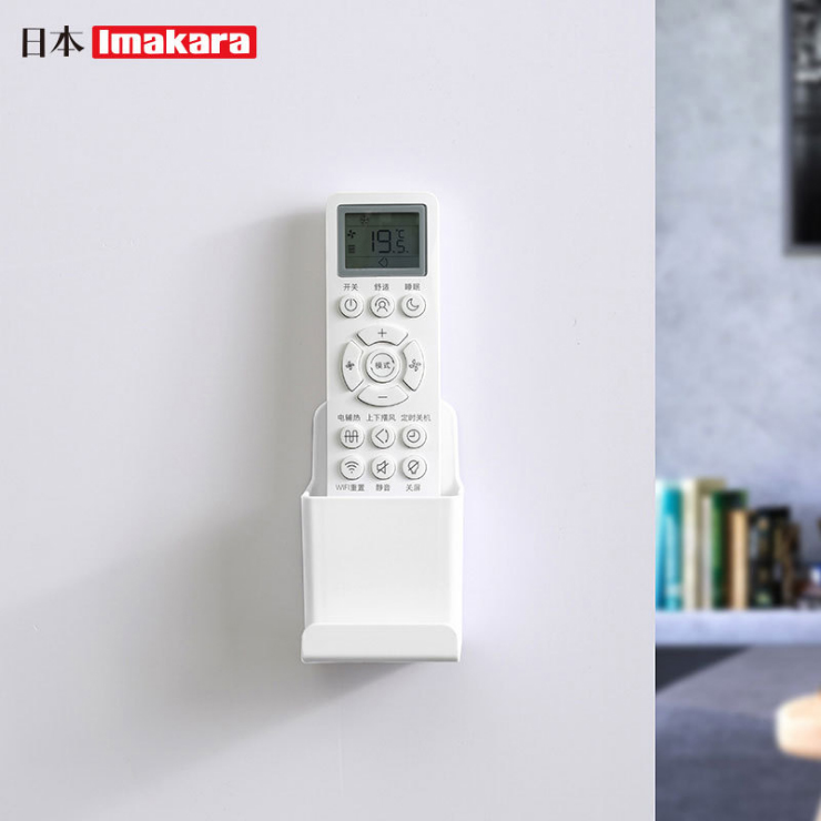 Japan wall mount remote control storage box mobile phone TV air conditioning remote control blue box storage rack free punch paste type