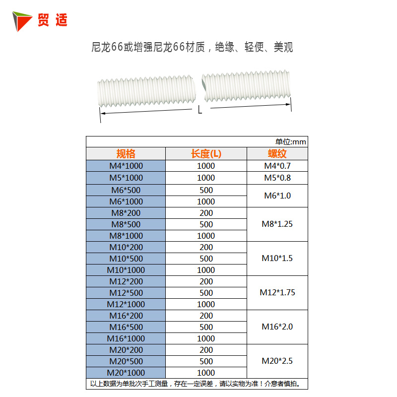 Plastic Screw Rod Full Thread Insulation Nylon Full Tooth Strip Bolt screw cap M4M5M6M8M10M12M16M20