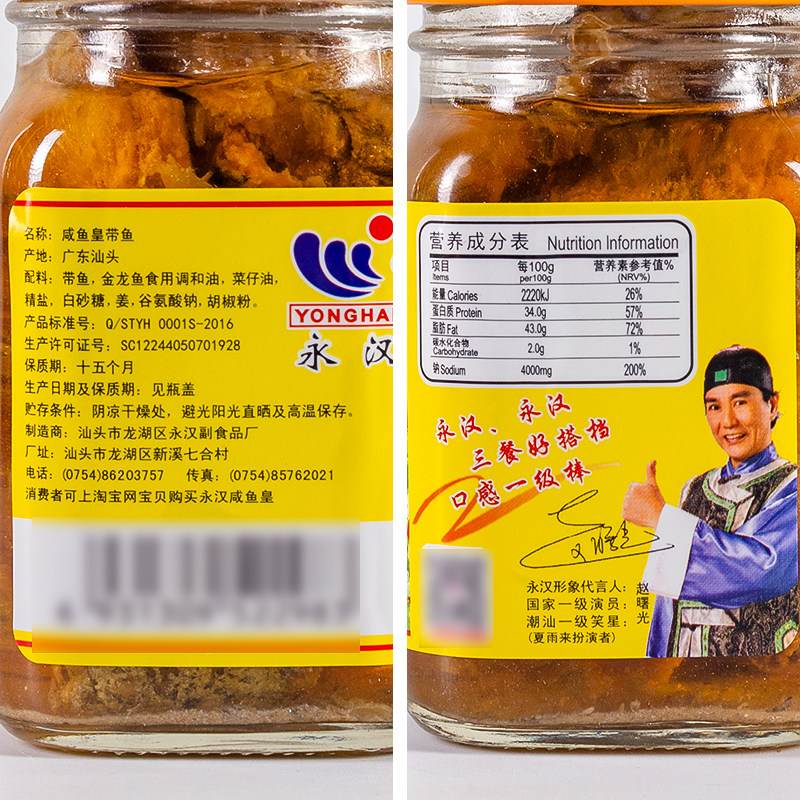 Yonghan family salted fish emperor 210g*2 bottles of Chaoshan specialty with rice porridge miscellaneous salty rice with fish ready-to-eat crispy fish