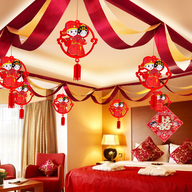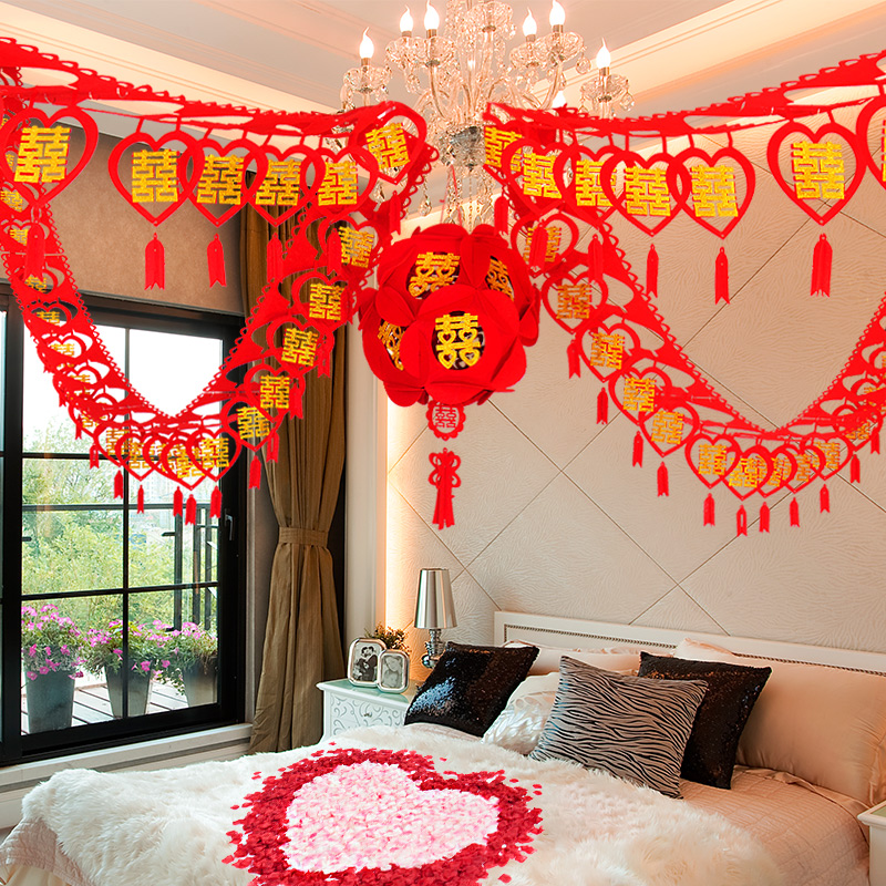 Wedding arrangement wedding room pull flower decoration set living room bedroom happy word pendant arrangement wedding wedding supplies Daquan