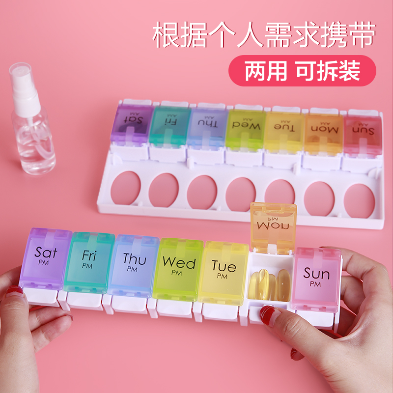 7-compartment rainbow-colored button pillbox (delivery medicine cutter) 14-compartment rainbow-colored button pillbox (removable) (medicine cutter delivery) 7-compartment orange button pillbox (drug cutter) 14 black and white buttons