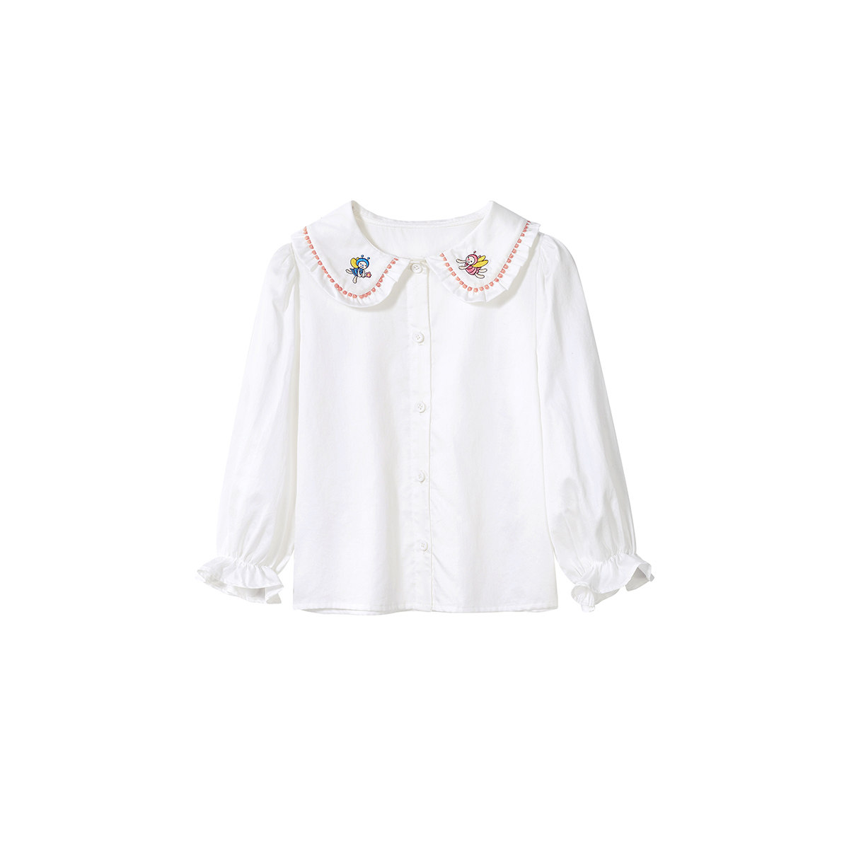 Q] MQD Kids Girls Kids Lapel Shirt 2021 Spring Wear New Baby Lace Cartoon Kids Versatile Shirt