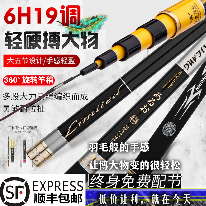Imported carbon fishing rod 6H19 tune 28 tune ultra-light ultra-hard combat rod long-section platform fishing rod black pit big object fishing rod