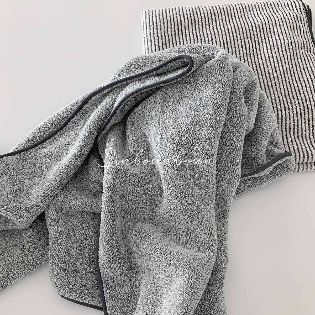 Xin help grocery shop gray stripe can wrap bath towel bath towel female summer soft household cute bath towel