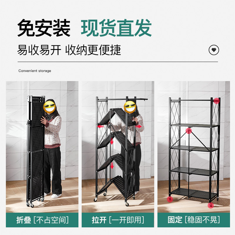 World Leap Floor Type Multilayer Microwave Oven Oven Kitchen Shelving Shelf Storage Shelf Storage Fold free of installation SkyCheng