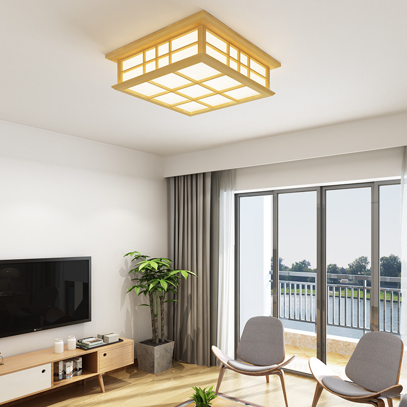 Wooden day style suction ceiling lamp tatami lamp bedroom original wood color Chinese solid wood art lamp Nordic book house Han style lamp -Taobao
