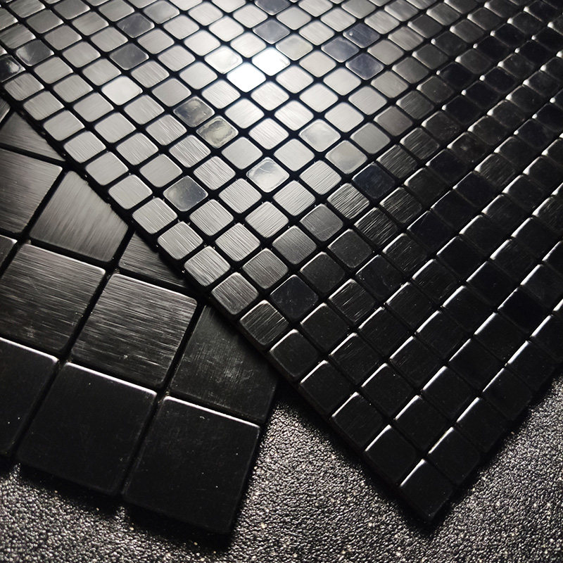 Black metal mosaic wall sticker pure black tile self-adhesive background wall modern simple small particle art Aluminum plastic board