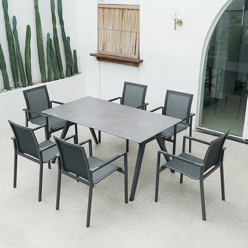 Network chair outdoor courtyard greenhouse high-end waterproof sunscreen outdoor balcony black leisure table and chair combination