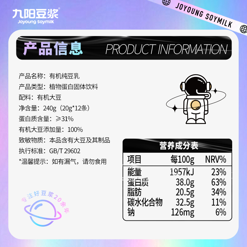 Jiuyang soy milk organic pure soy milk powder bag without added sugar original flavor soy milk student nutrition breakfast meal replacement