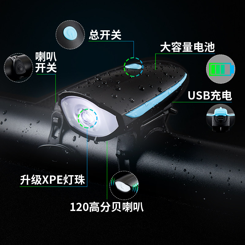 Bicycle lights Night ride USB charging headlights Strong light Mountain lights Children's bicycle bells horn riding equipment