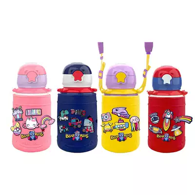 (Wei Ya recommended) Kumamoto children's DIY stainless steel thermos cup dual-purpose hole straw water Cup