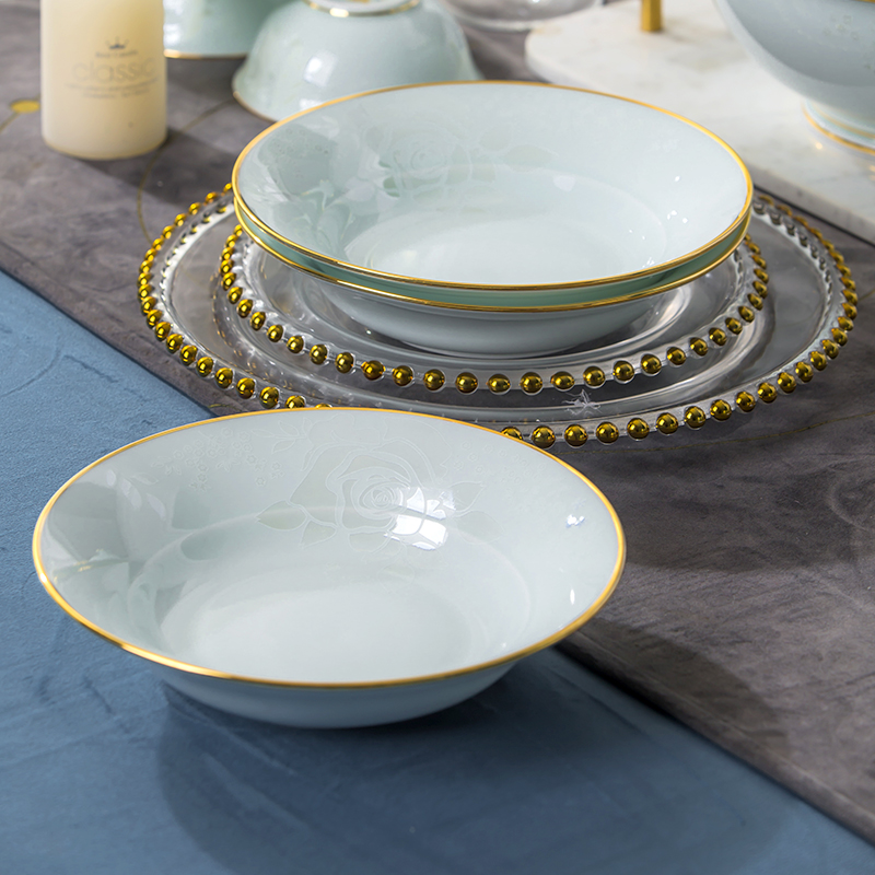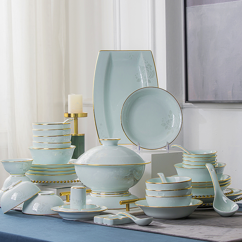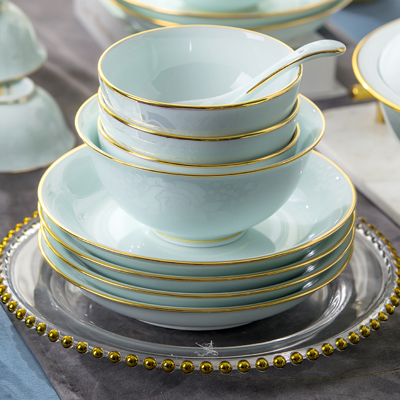 Bean Green Glaze Ceramic High-end Cutlery Sets of Jingdezhen White Porcelain Home Dish Tray Composition Joqian Wedding Gift Box Dress