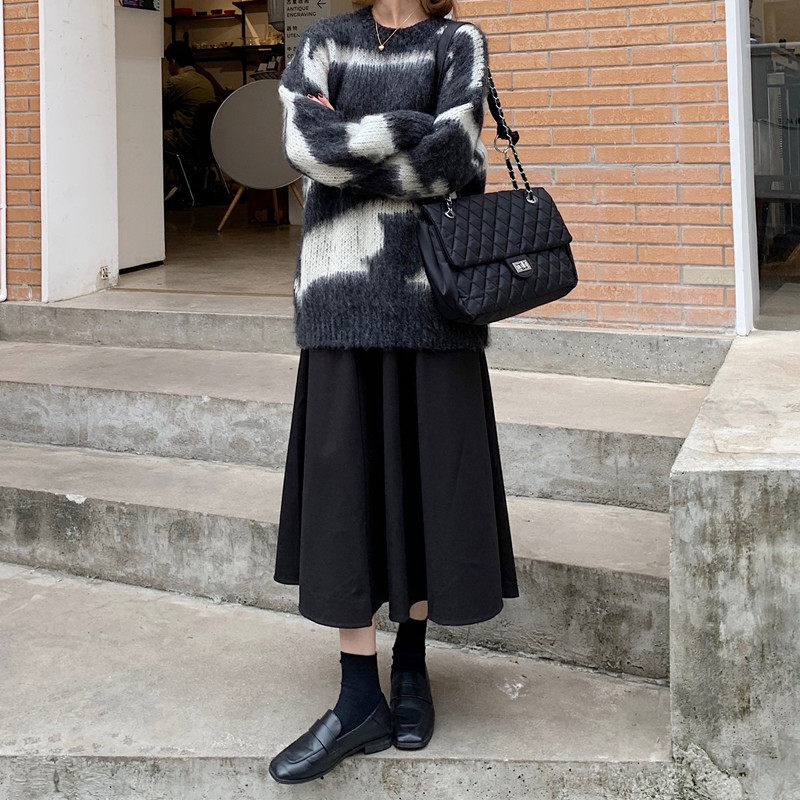 Fat mm large size fur with half body skirt woman 200 catty of spring autumn new display slim high waist black a long version of the umbrella skirt