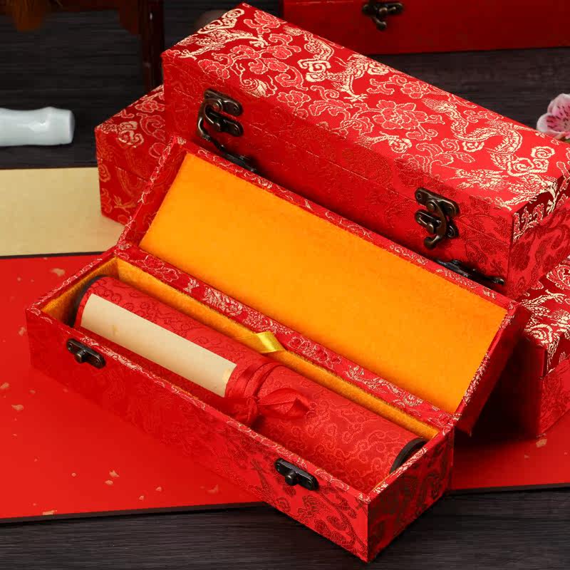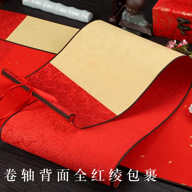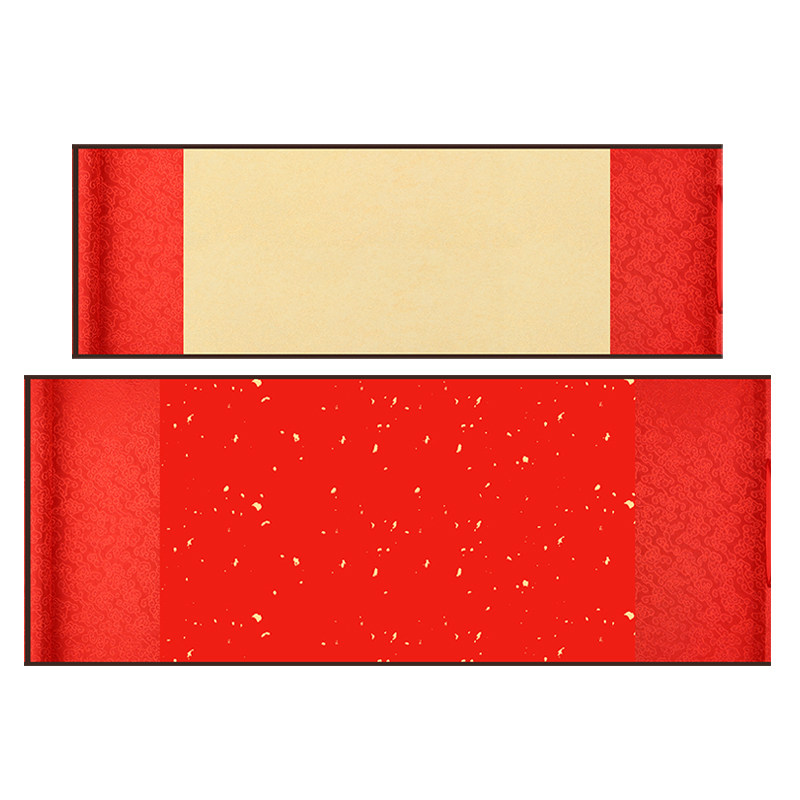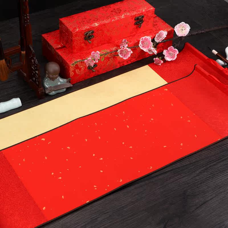 Imitation ancient Chinese golden age red sprinkled gold waxed wedding book hanging shaft Semi-cooked and happy Xuan paper Scroll Baitian Wedding Please Post