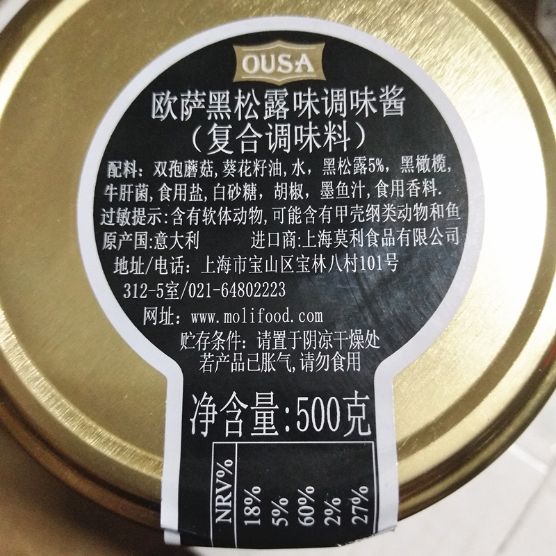 Italy imported OSA black Truffle sauce 500g Italian pasta pizza seafood Western black mushroom sauce 180g