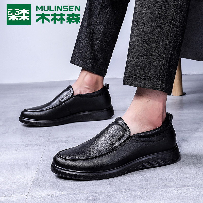 Wood Linson Men Shoes Business Casual Leather Shoes Men's Spring Summer New Genuine Leather Hollowed-out Soft Bottom Middle-aged Dad Shoes