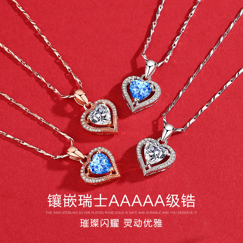 (Exquisite Gift Box)Rose gold Blue Zirconium Single-mind necklace (exquisite gift box) Rose gold White Zirconium Single-mind necklace (exquisite gift box)Platinum Blue Zirconium Single-mind necklace (exquisite gift box)Platinum
