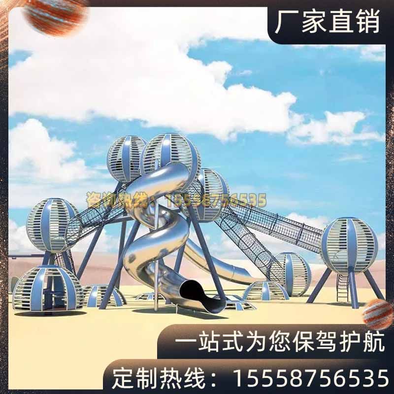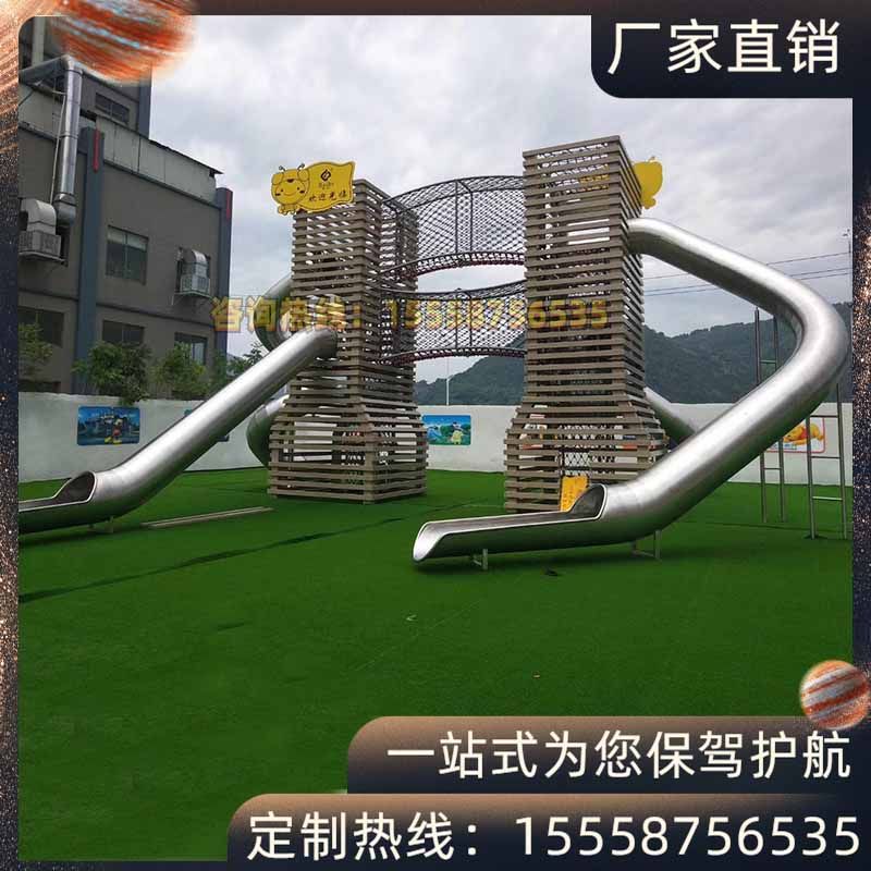 Customized 304 stainless steel slide outdoor kindergarten children's spiral flat single and double slide drill hole amusement facilities