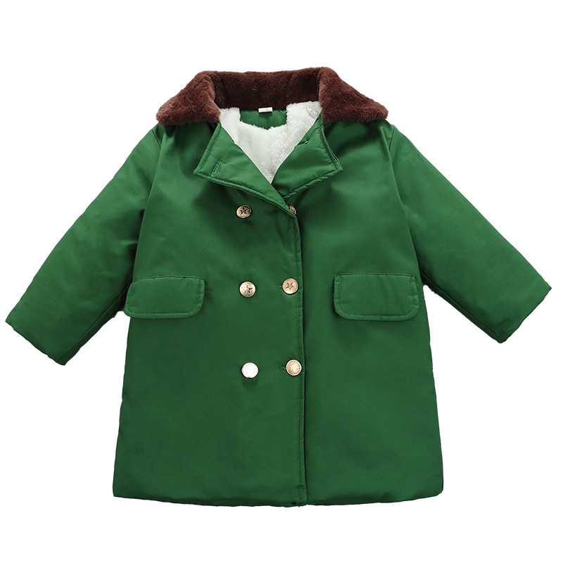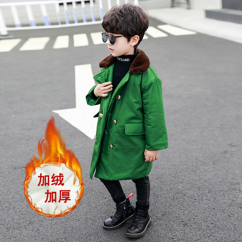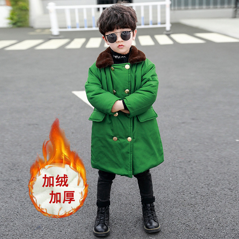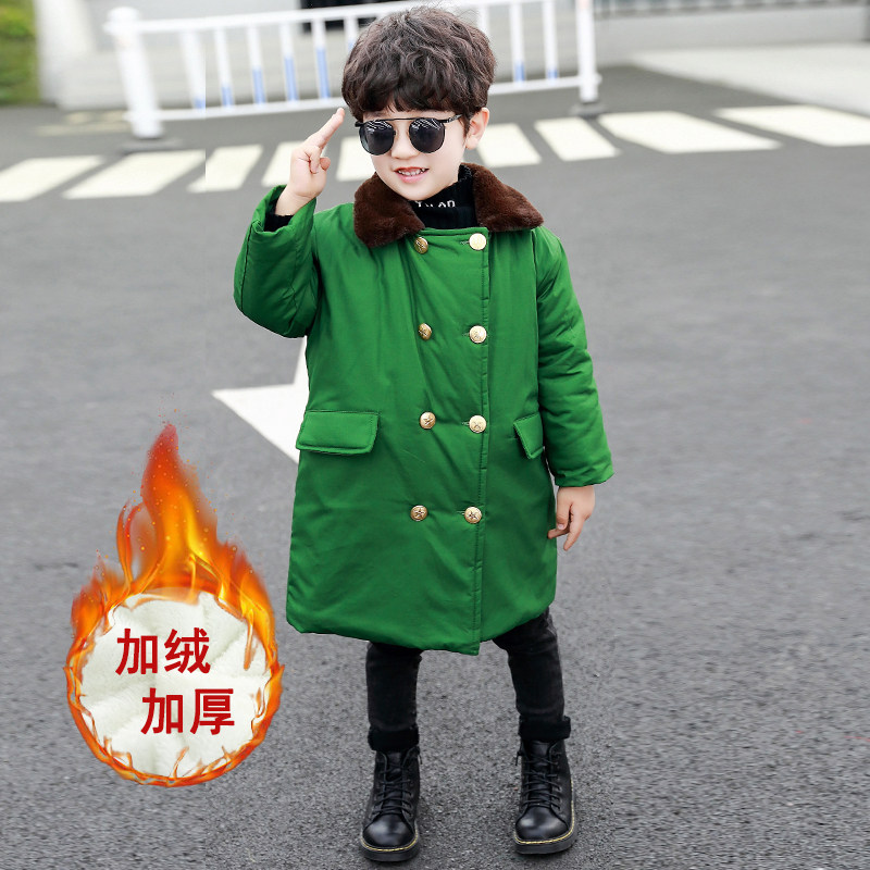 Boy's uniform coat of dress plus cotton thickened with velvety warm medium long version Army Green Red Army Children's jacket trendy suit women