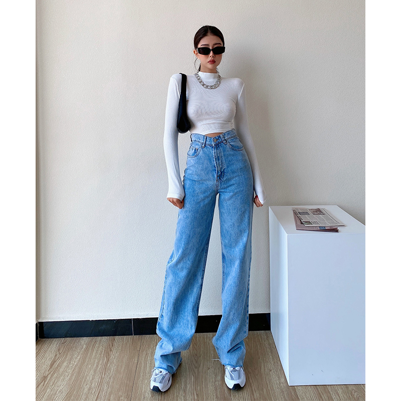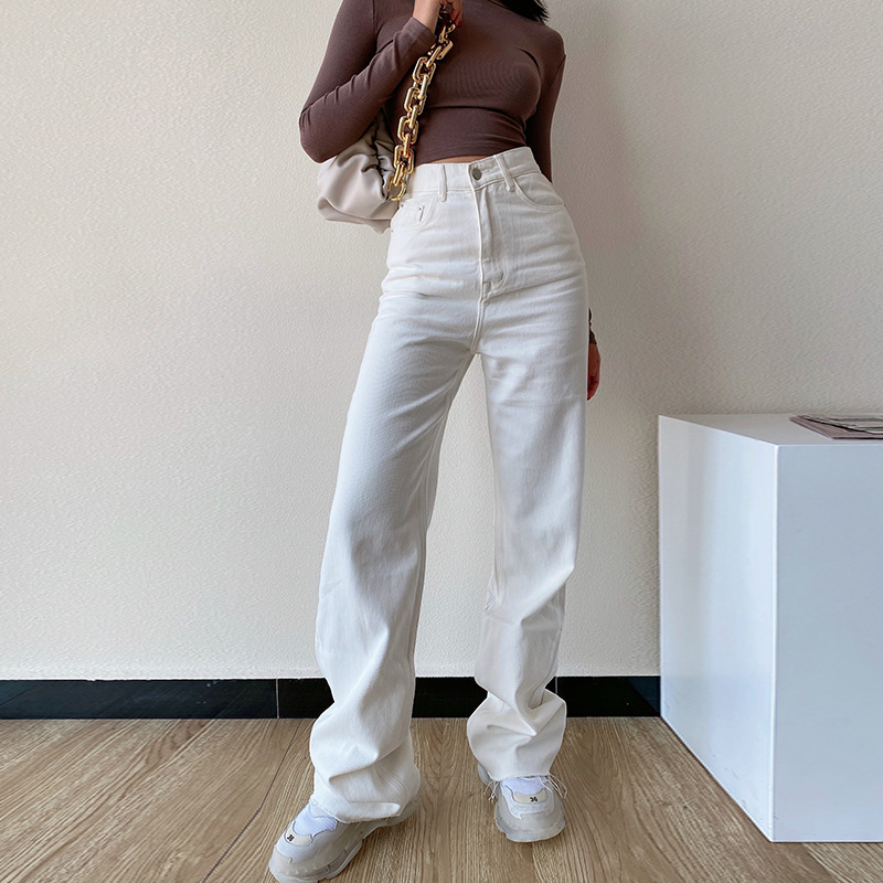 liviahome leg long mopping jeans women high waist thin white straight lengthened pants female tide ins