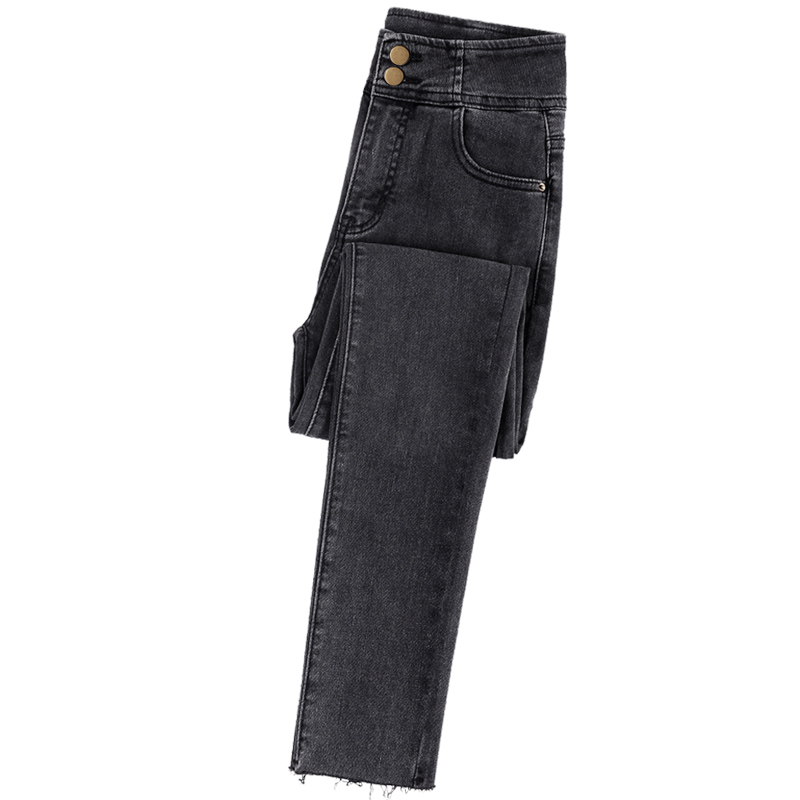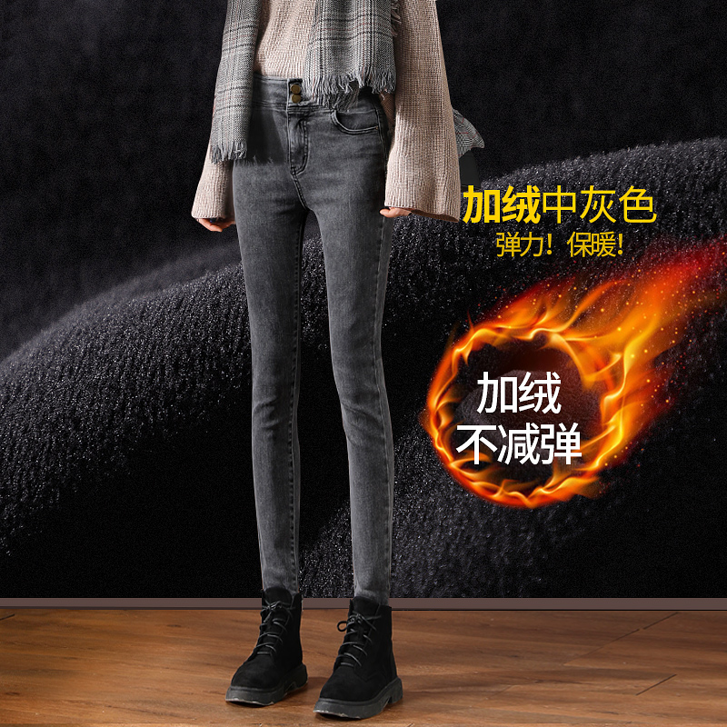 SNICYKER black jeans women's 2020 autumn and winter new style plus velvet high waist slim tight nine points pants