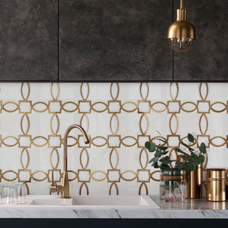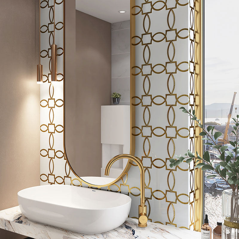 Nordic Genguan Tile Makeup Room Bathroom Metal Mosaic Arched Background Wall Marble Waterknife Parquet Wall Brick