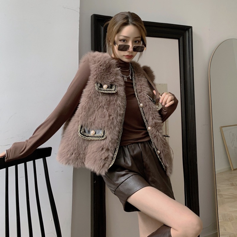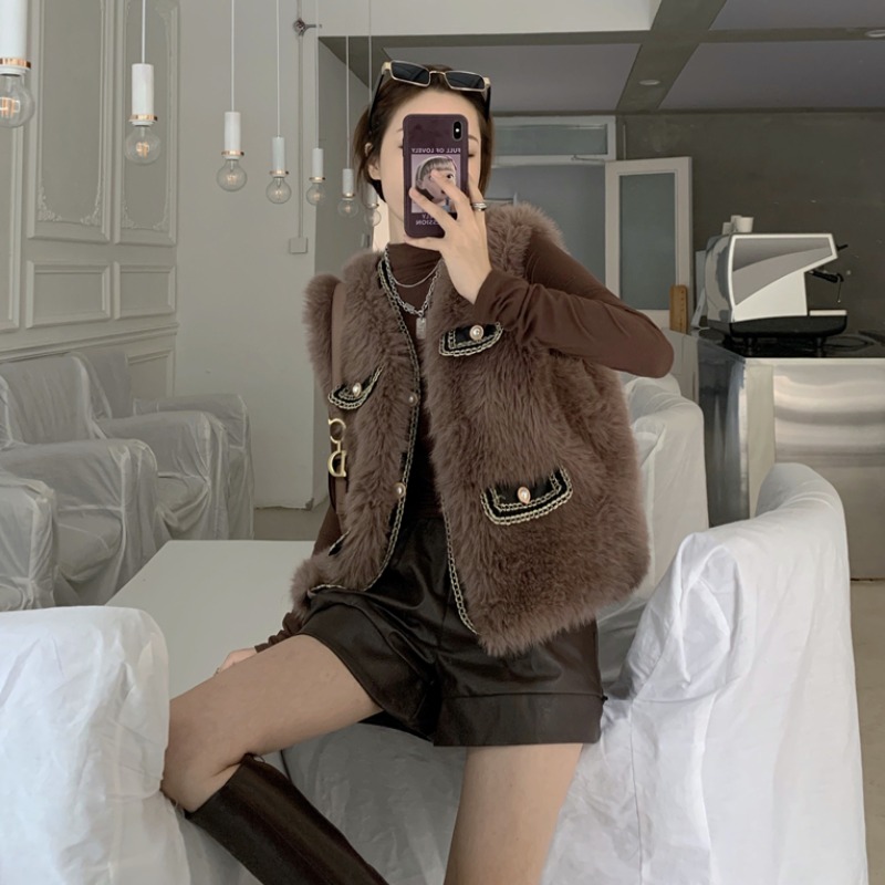 Sanskrit fox fur waistcoat 2022 autumn winter new Korean version loose with short vest fur coat grass jacket female young