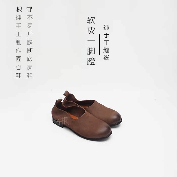 Soft leather One foot pedal jacket foot brown casual men's shoes Stitches Tire Anti Slip Bottom Weight Foot Custom Goon Handmade Shoes
