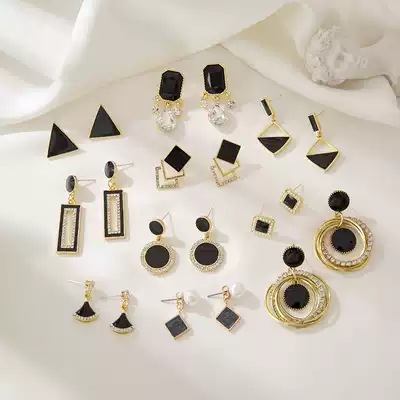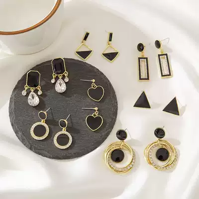 Small black triangle ear needle Short black love ear needle triangle round asymmetrical ear needle black square 925 silver ear nail black circle ear needle 925 silver black edge diamond square ear needle-silver needle black round
