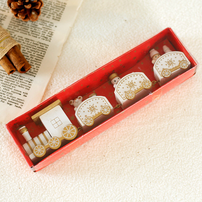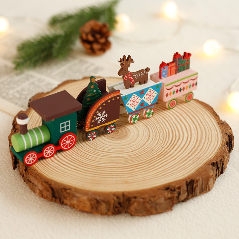 Christmas decorations building blocks small train ornaments children's toys desktop Christmas decoration scene layout small props