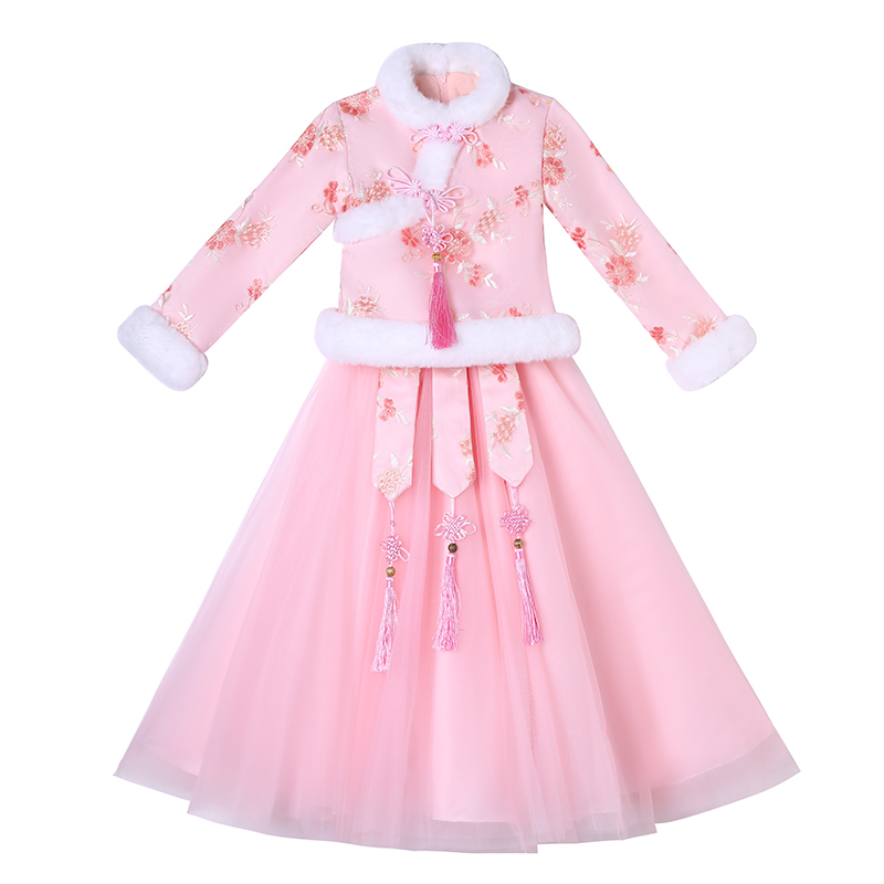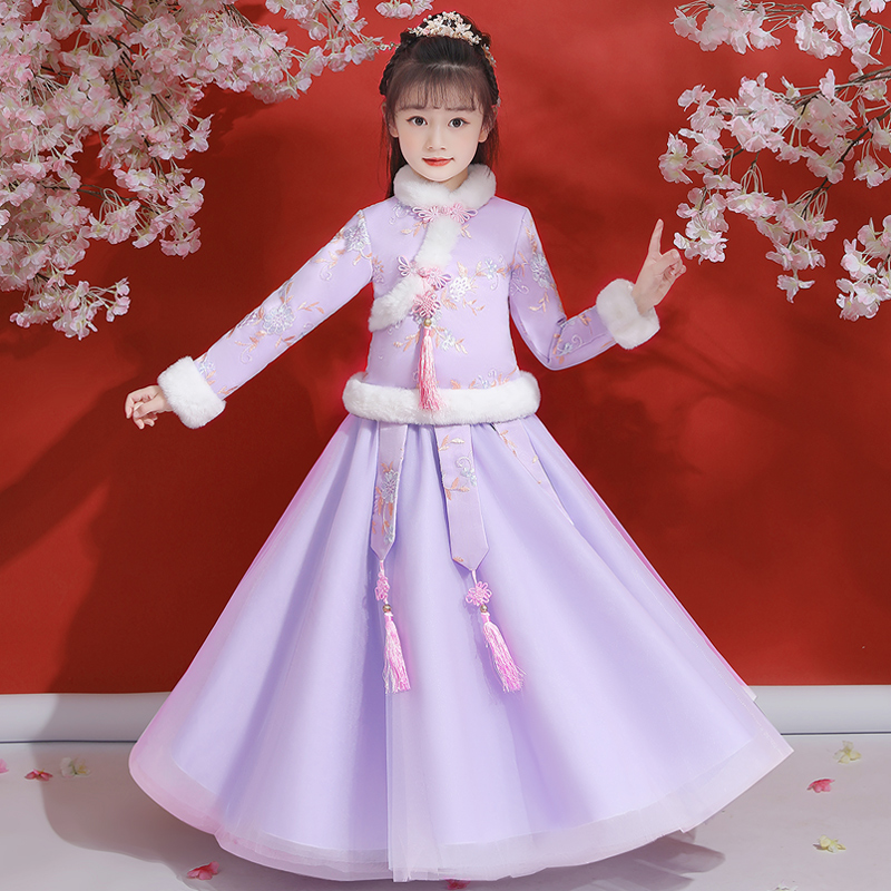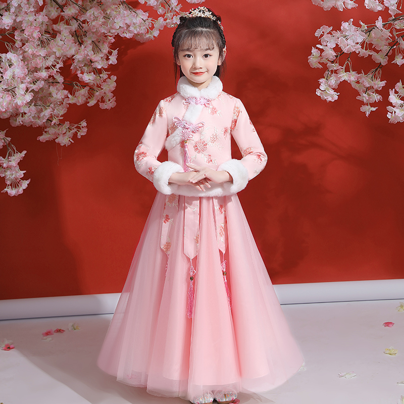 Children's Hanfu women's autumn and winter ancient costume super fairy children's Tang dress dress winter dress cheongsam skirt 2021 new style plus velvet