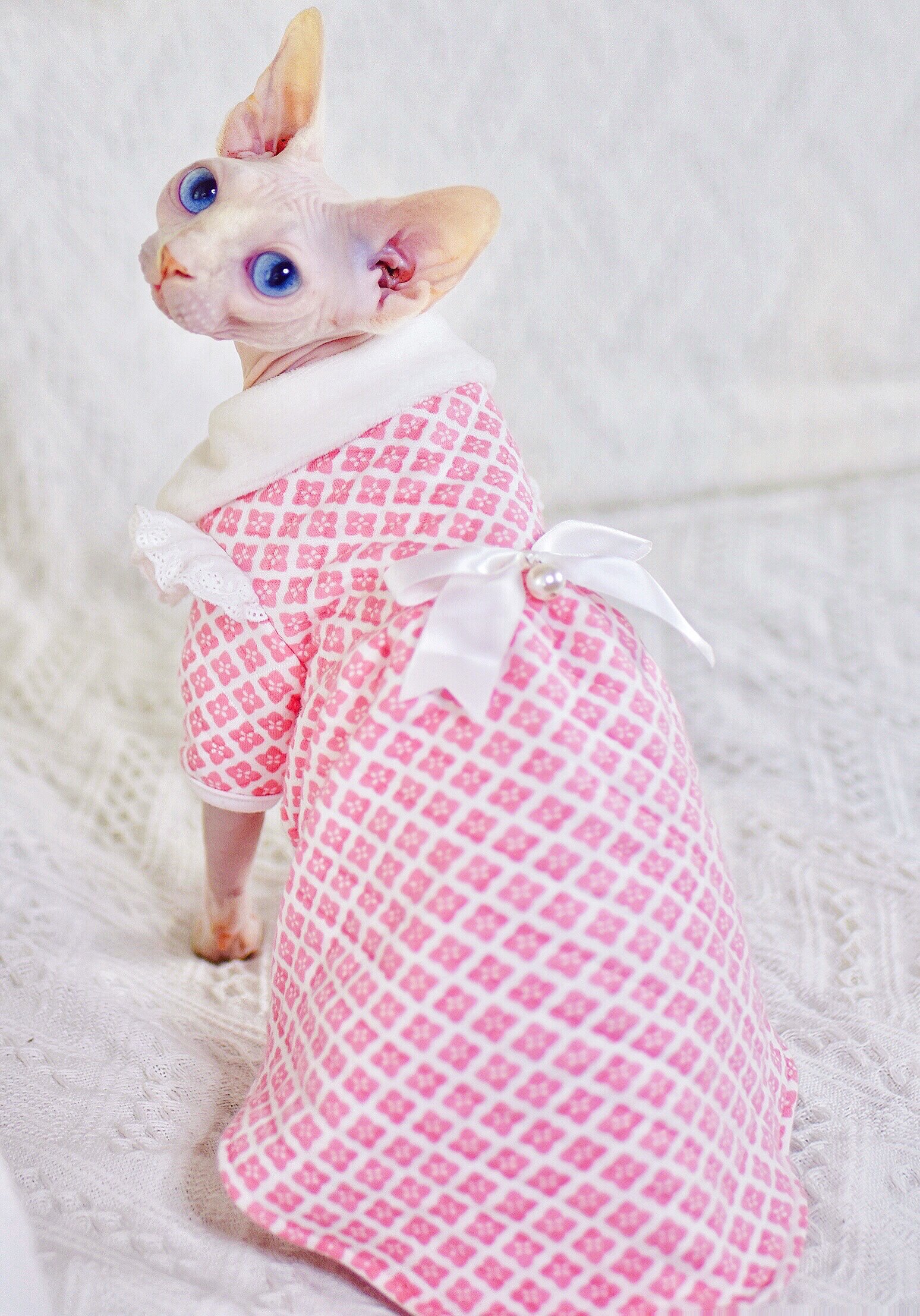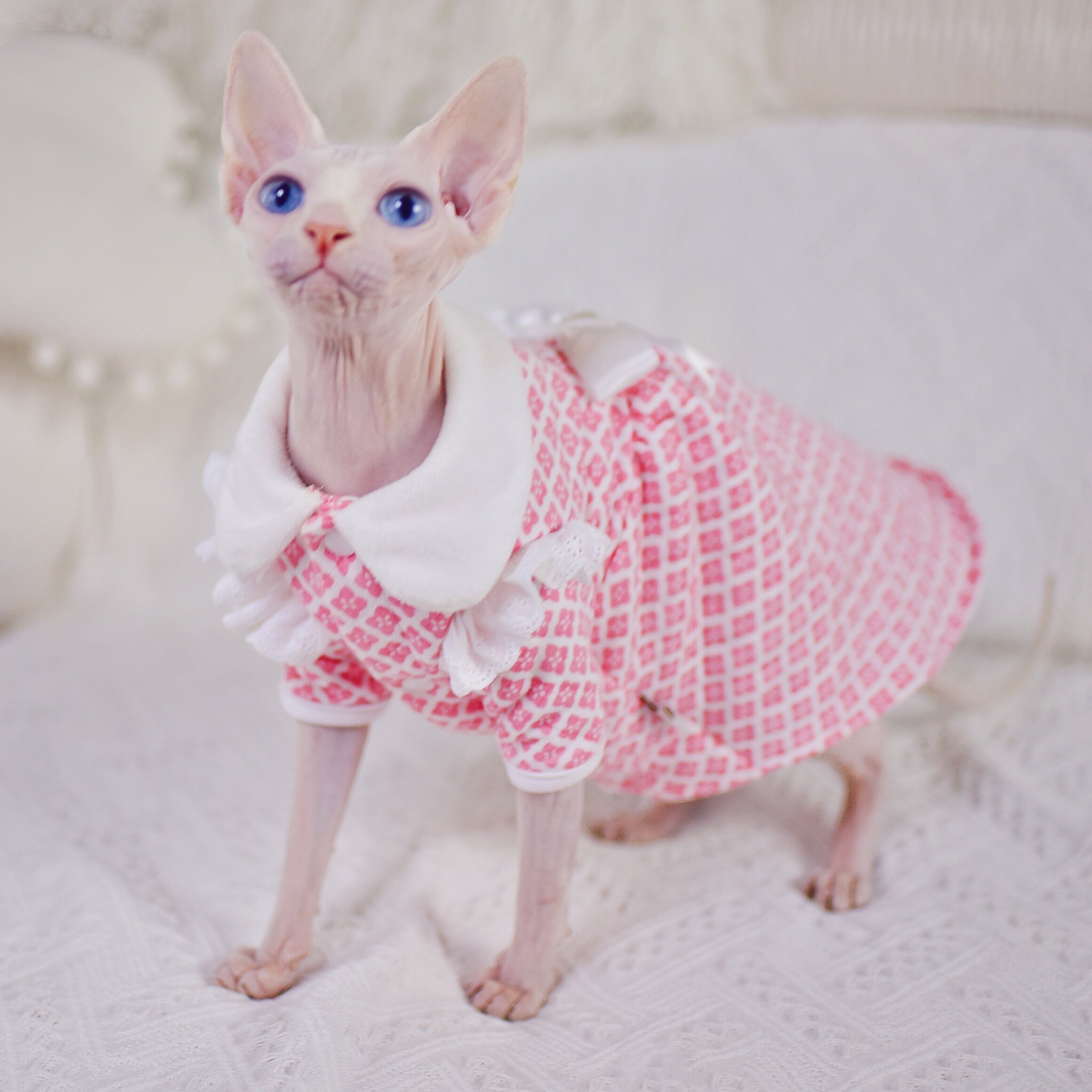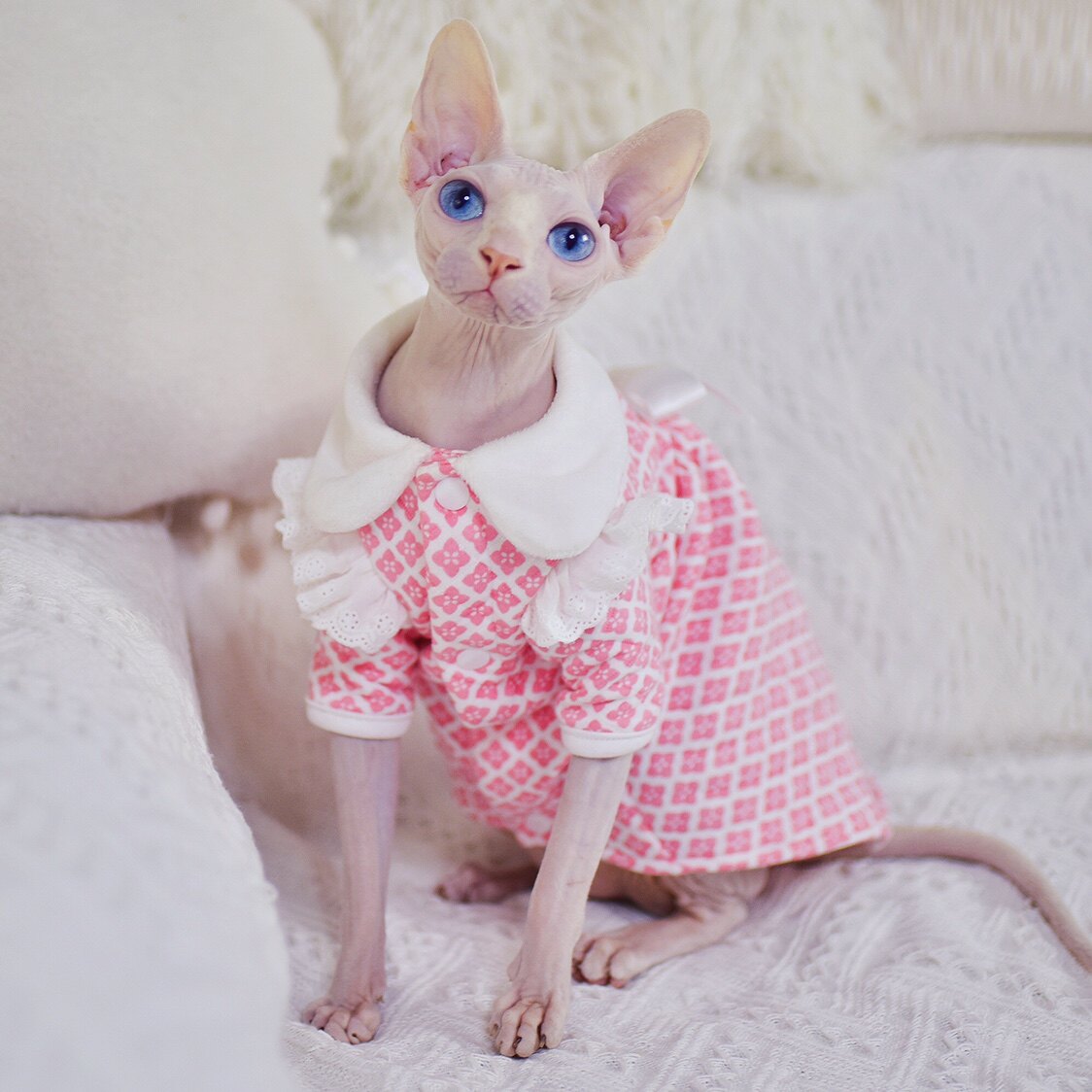 Baby skin-friendly cotton Princess lace dress cute warm splinter sphenx hairless cat clothes German