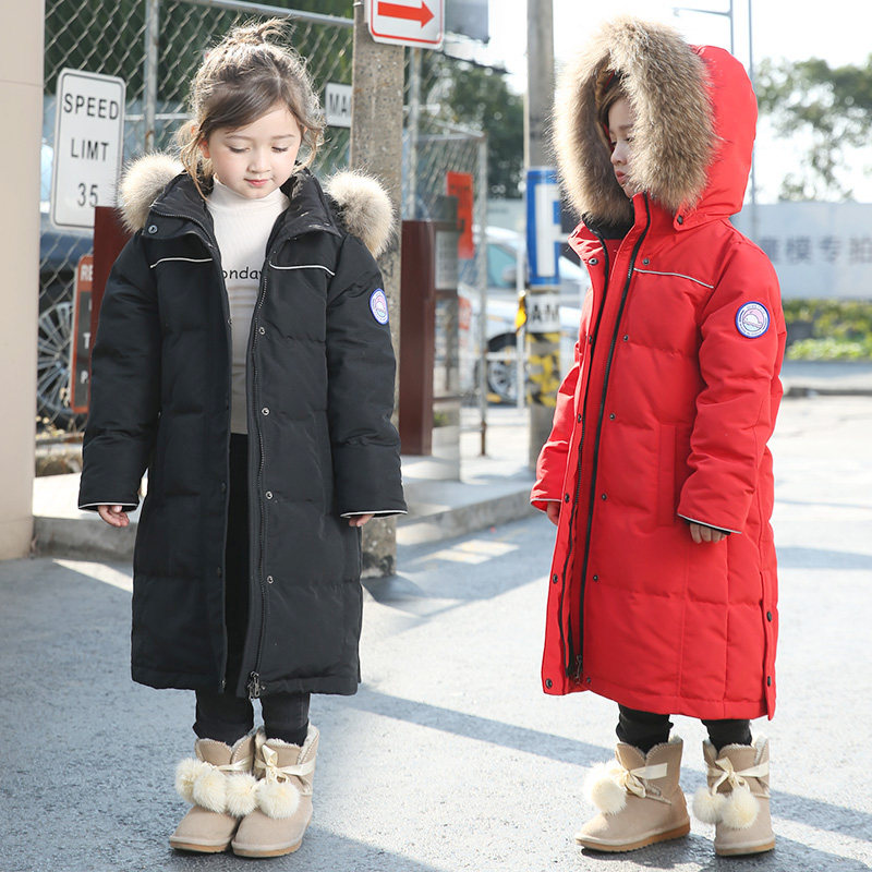 Children's down clothes boy girl among girls 2021 Yangqi Children's white duck suede winter over knee jacket-Taobao