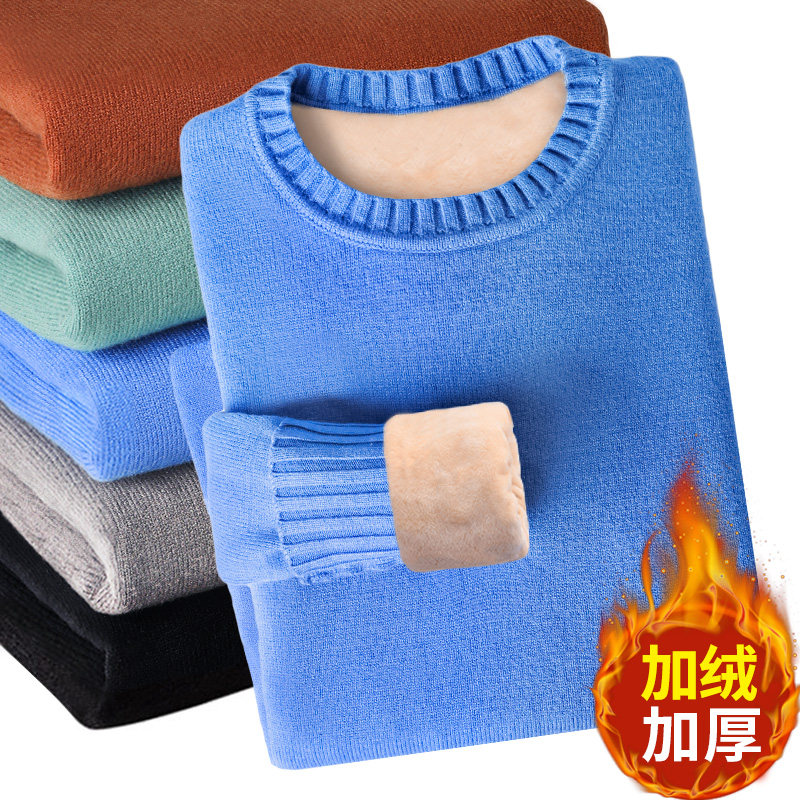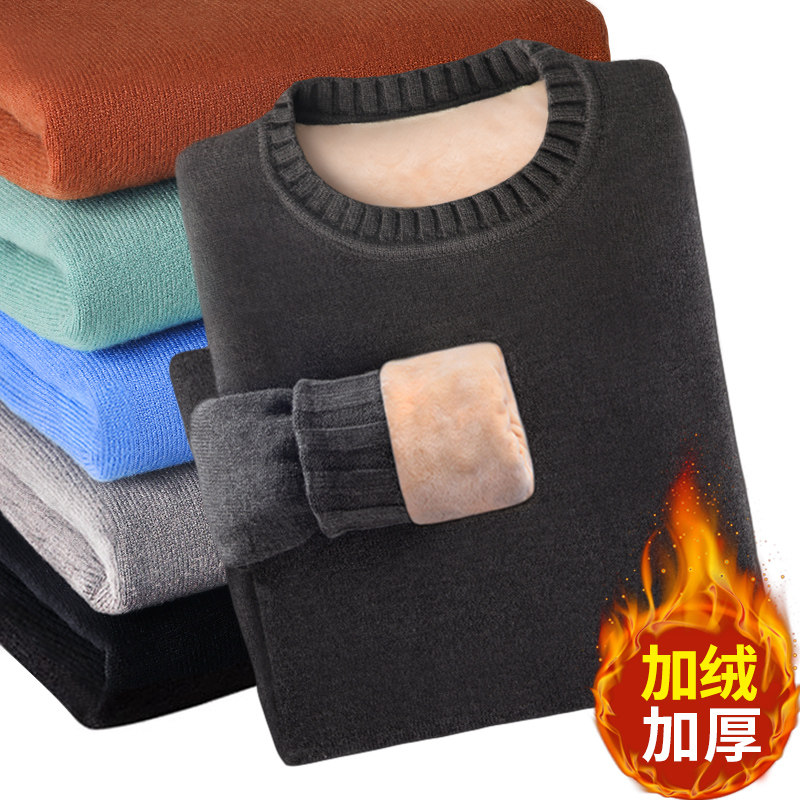 Men's sweater plus suede thickened round neckline inside lap 2020 autumn winter trendy warm clothing Needle jersey