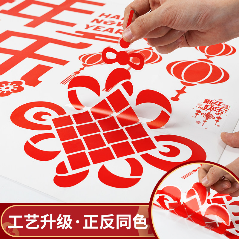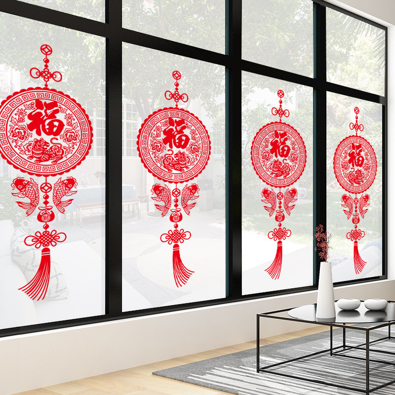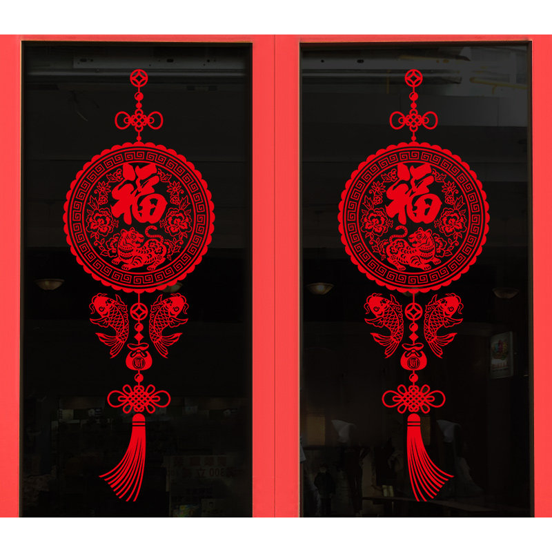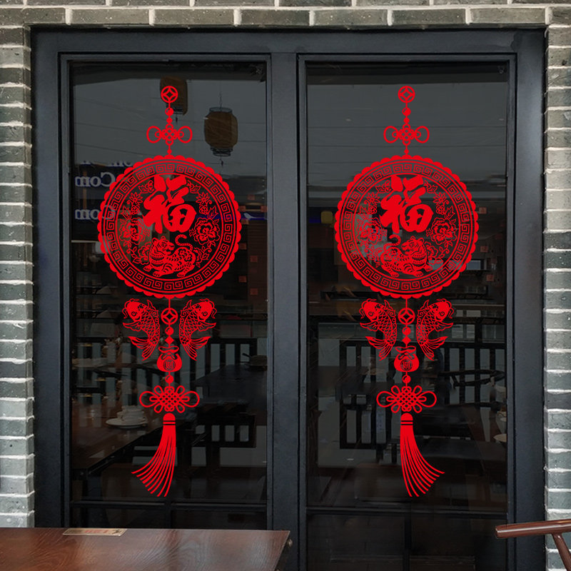 2022 New Year Decorative Glass Stickers Tiger Year Door Stickers Window Stickers Lucky Word Wall Stickers New Year Pictures Wall Stickers New Year's Day Layout