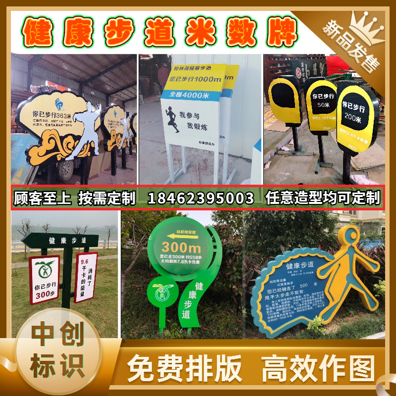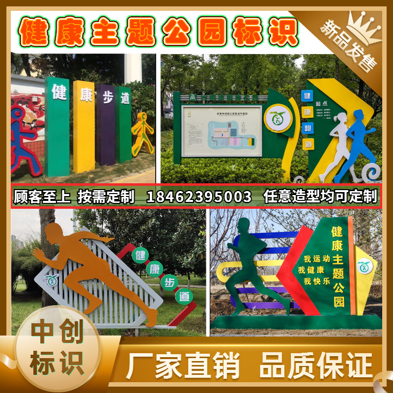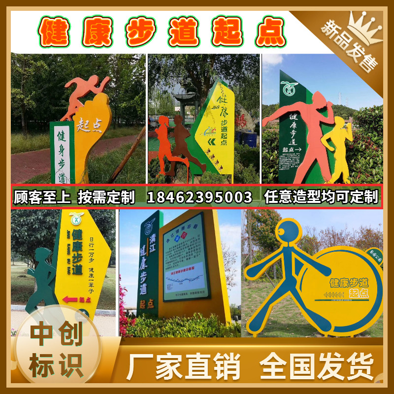 Health theme park pointing card Sports character modeling card Starting point end point meter card Trail identification card