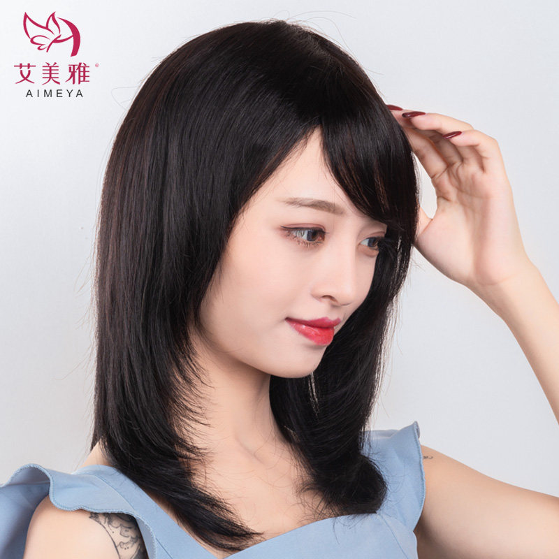 Wig woman long hair real hair natural lock bones full head cover mesh red Qi and sea wig sleeve repair face all live-action hair