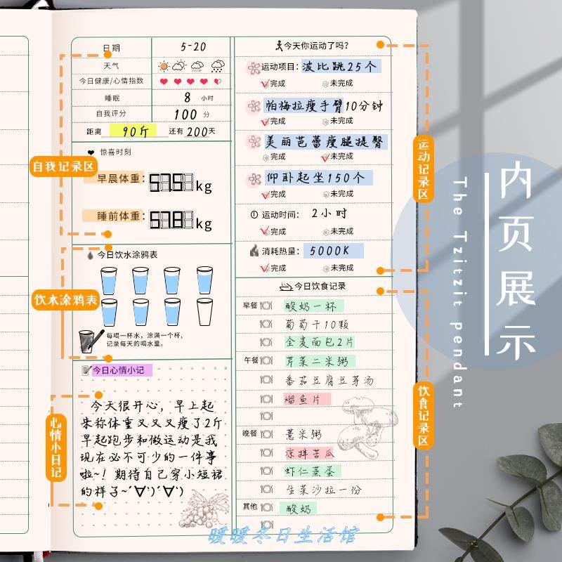Weight loss supervision punch card delay reminder plan table wall stickers target self-discipline inspirational diet calorie table artifact hand account