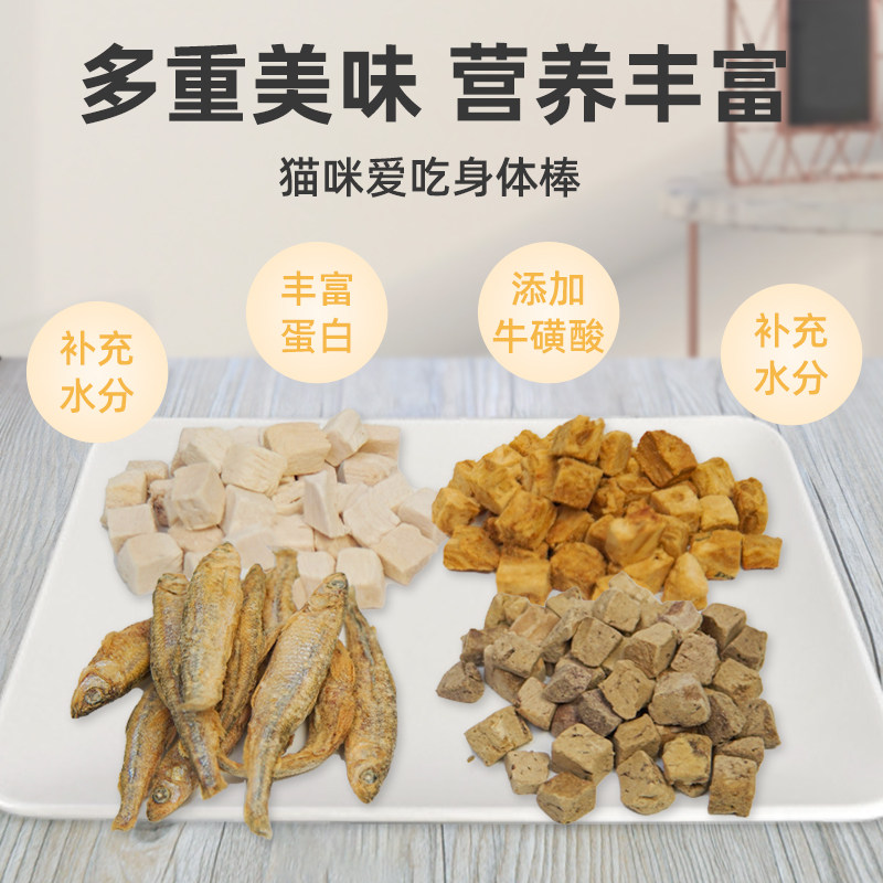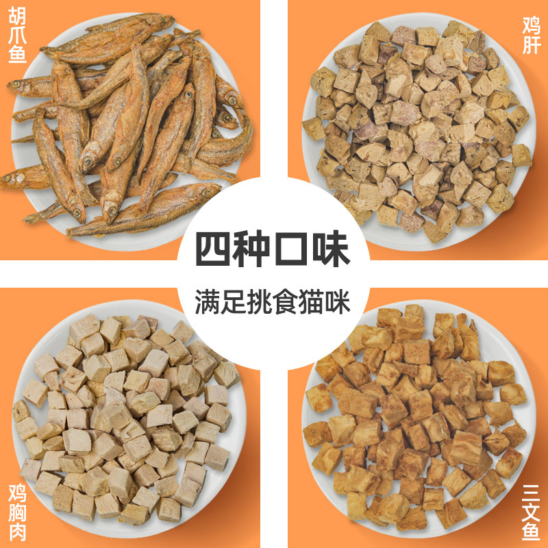 Pet snack cat food and dog grain canned chicken salmon cat and dog general freeze-dried meat snack to increase fat hair blush