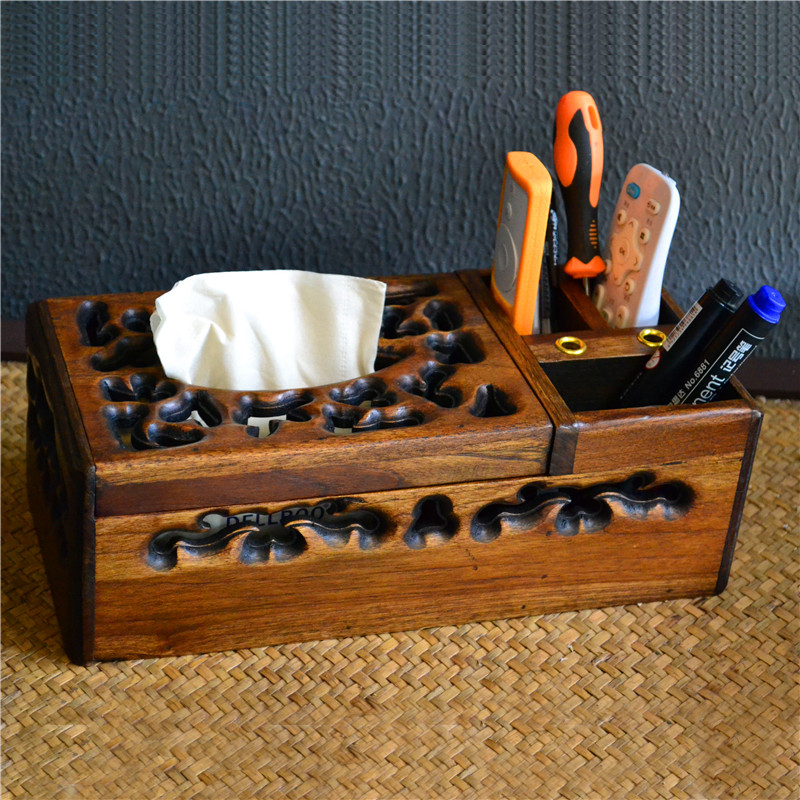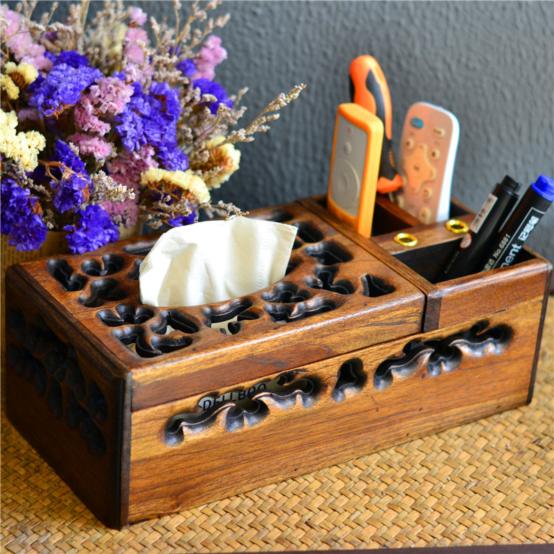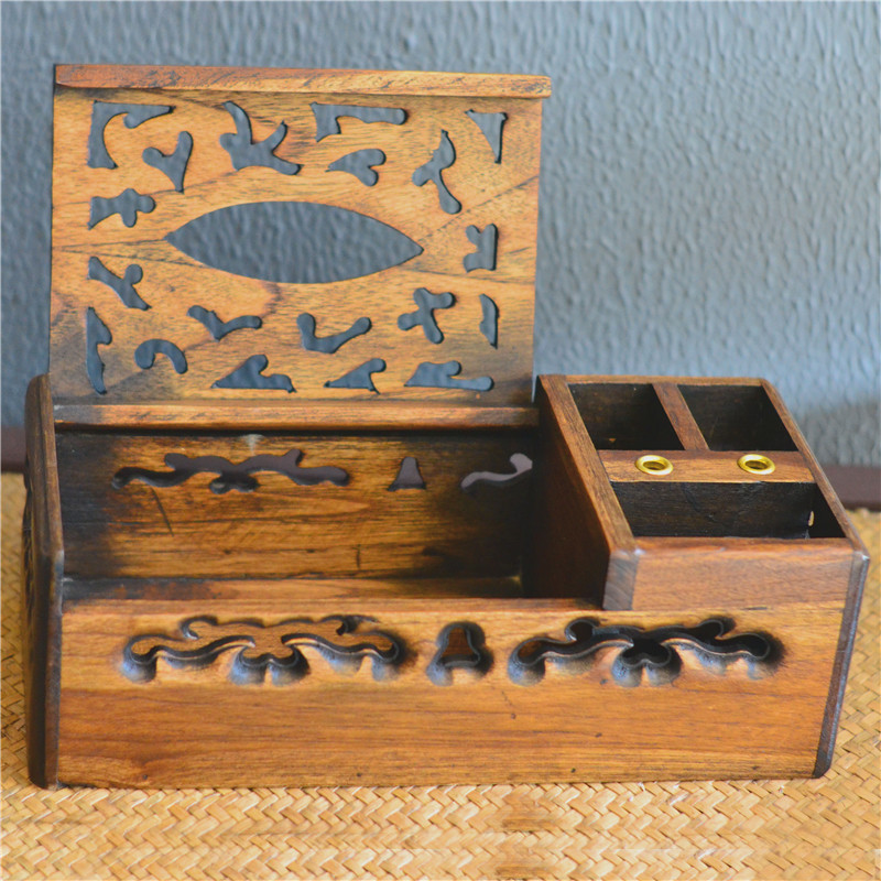 Thailand imported solid teak multi-function desktop tissue box Remote control storage box Living room creative toilet paper box Coffee table