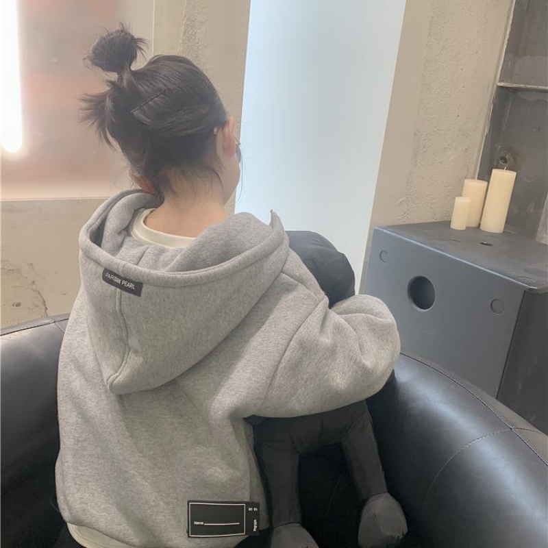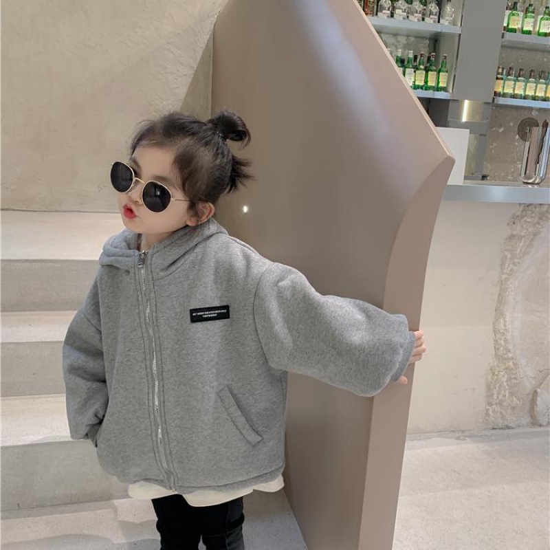 Girls simple loose hooded sweatshirt children's winter clothes children's casual thick jacket baby fashion warm top
