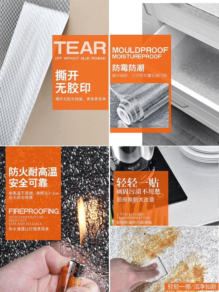 Silver sticker waterproof self-adhesive self-adhesive kitchen oil-proof sticker moisture-proof high-temperature cooktop non-stick oil wallpaper wallpaper