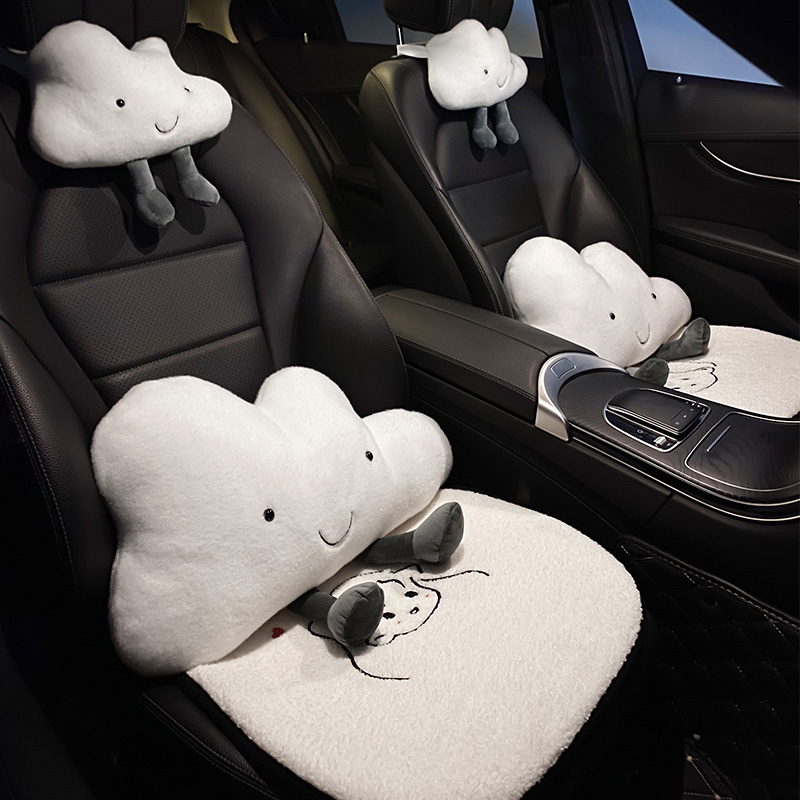 White Lamb Hair Front Seat Cushions A total of two boys and girls seat cushions Three-piece set boys girls cushions Backrest Seven pieces set boys girls front seat cushions White bear girls front seats Brown bear white front cushions