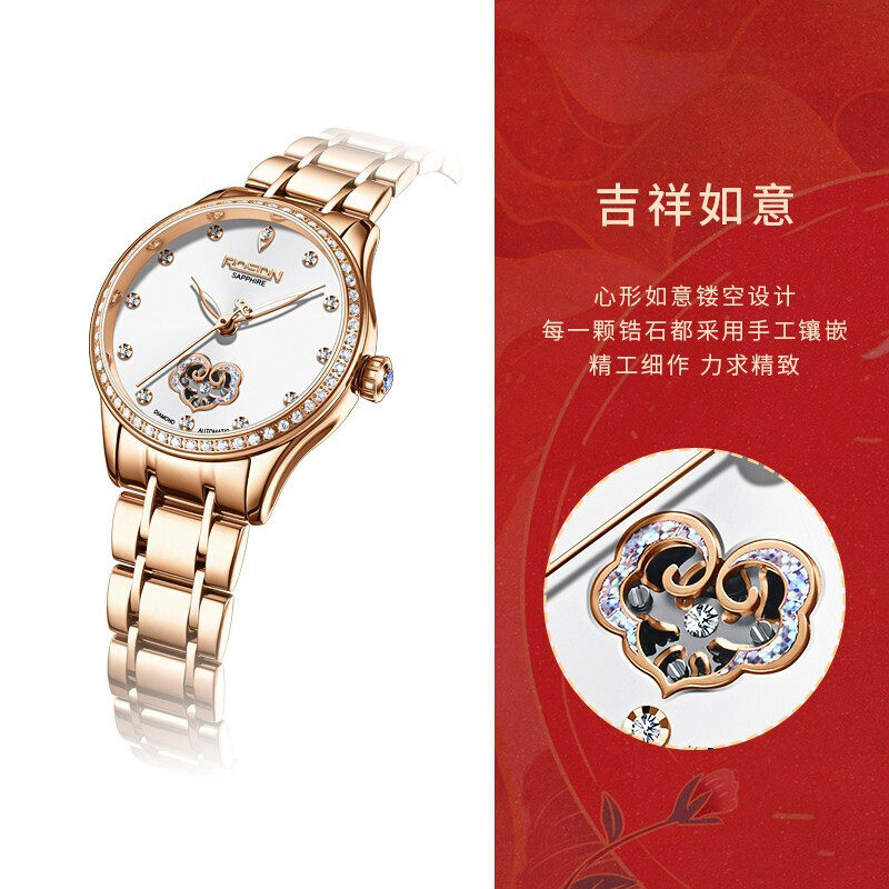 Lauston Hand Watch Women's Mechanical Watch Full Automatic Small Waterproof Hollowed-out Lady Watches Designer Women Watches