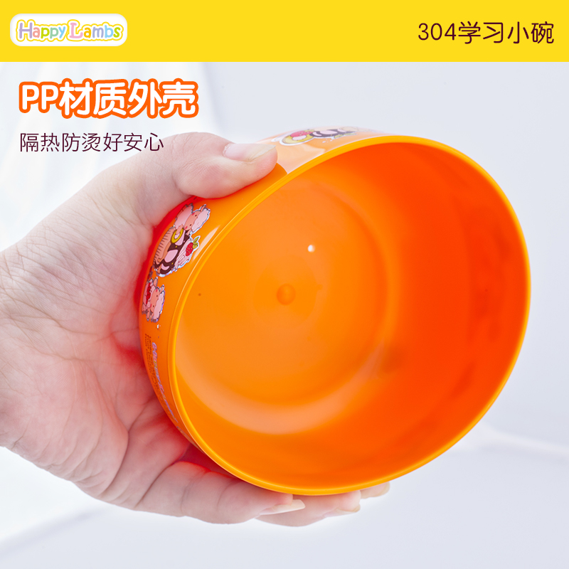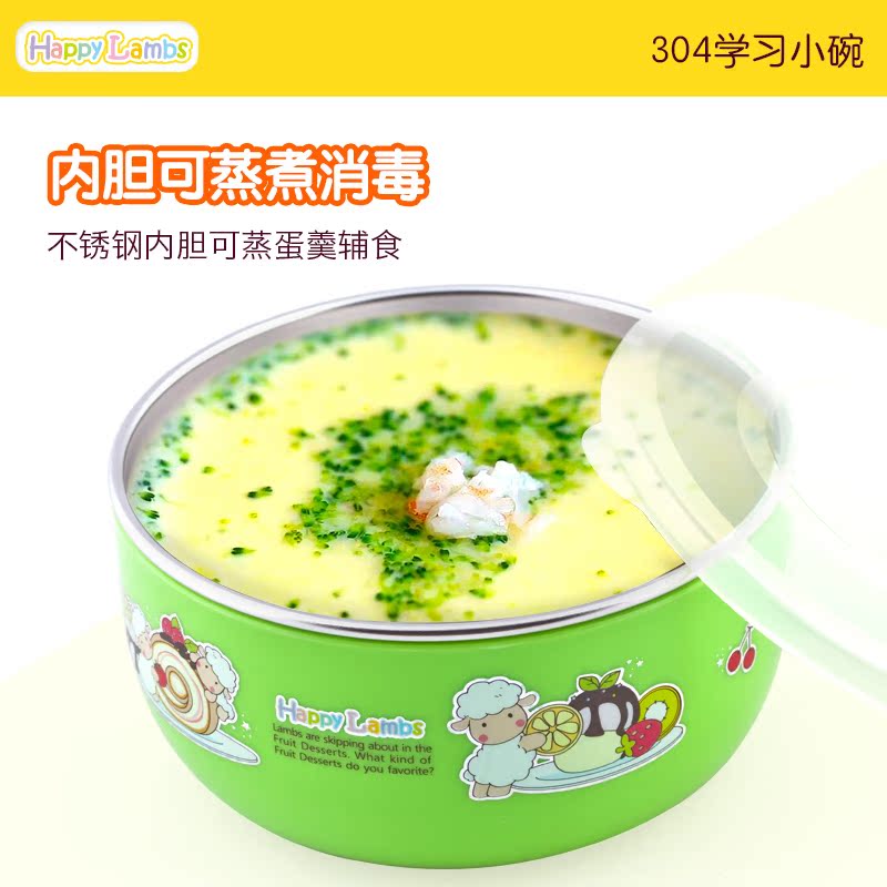 South Korea imported primary school students anti-scald soup bowl with cover 304 stainless steel detachable heat-separated rice bowl baby eating bowl
